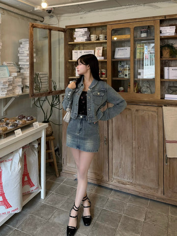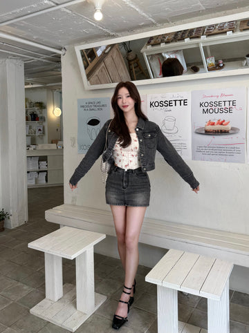 グレーデニムはブラックのレースでよりレースが馴染んでいてクールな印象に。