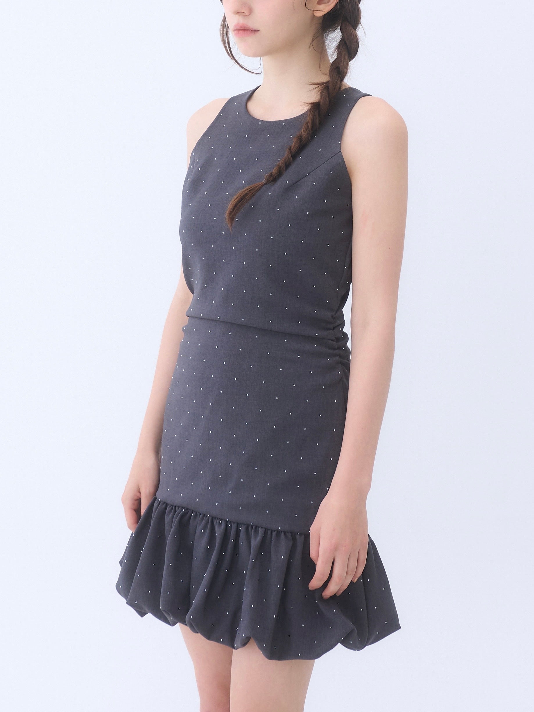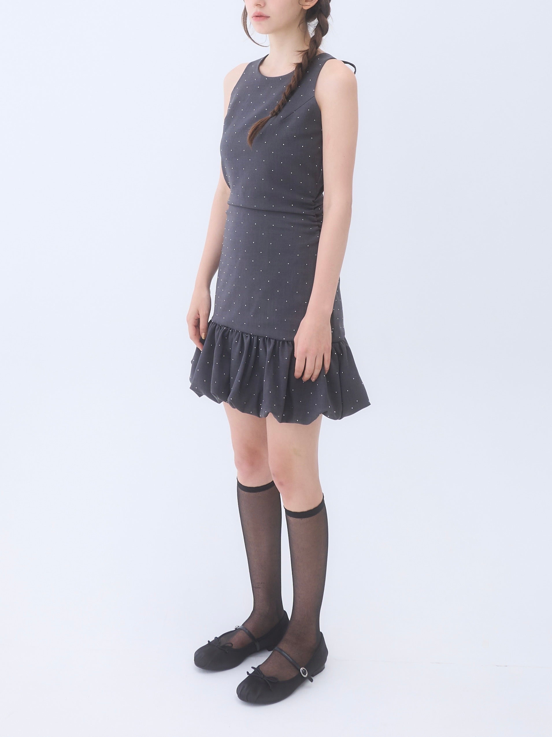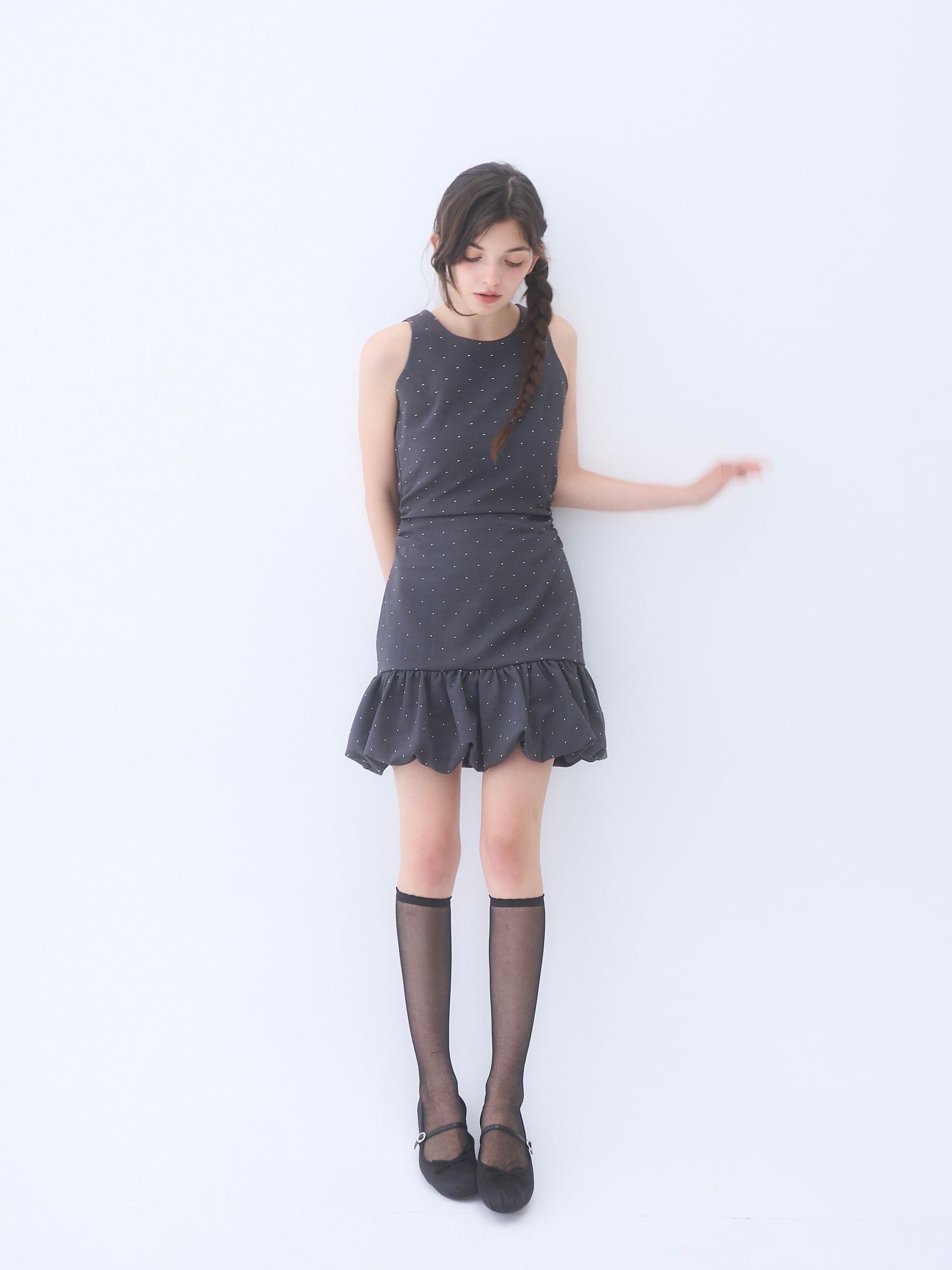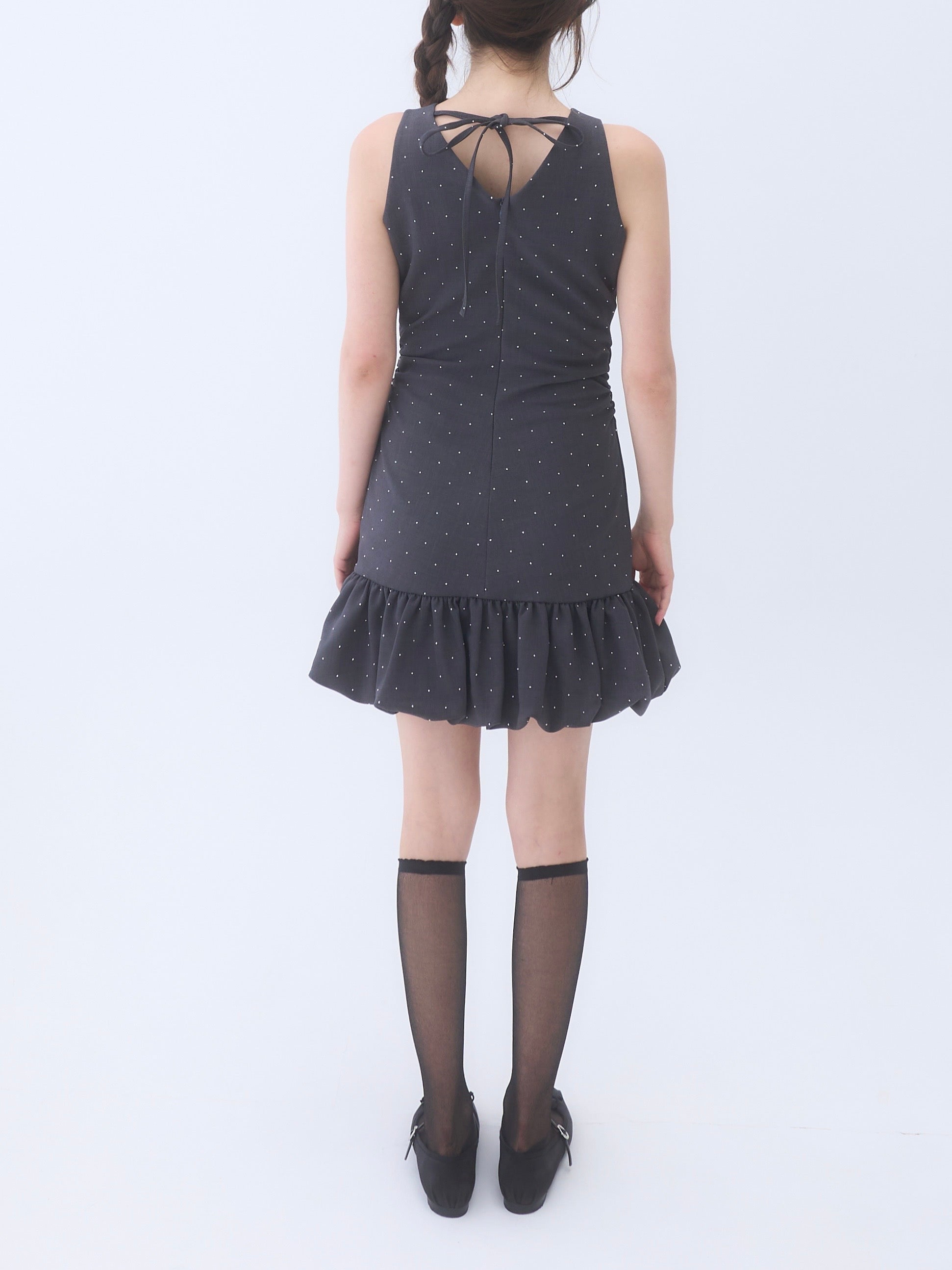 生地の性質と縫製上、ドットビジューの配列に乱れや解れが多少見られる事がございます。