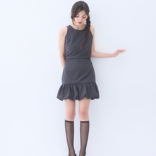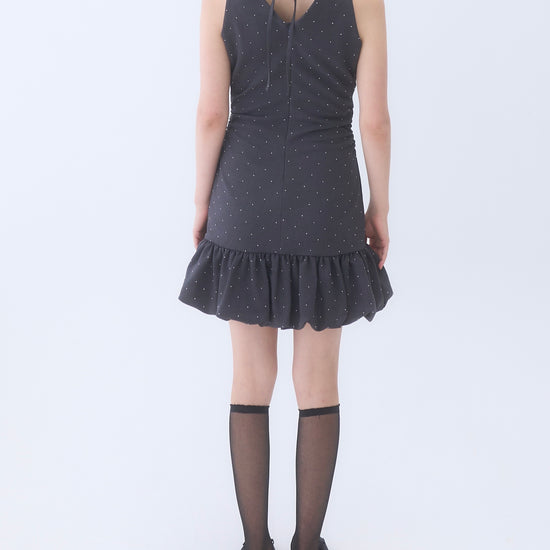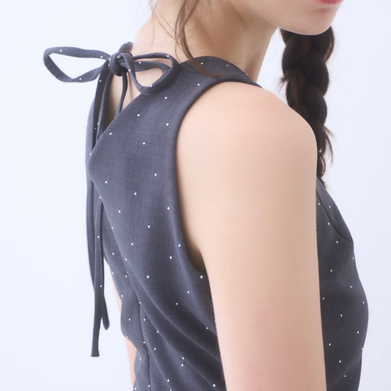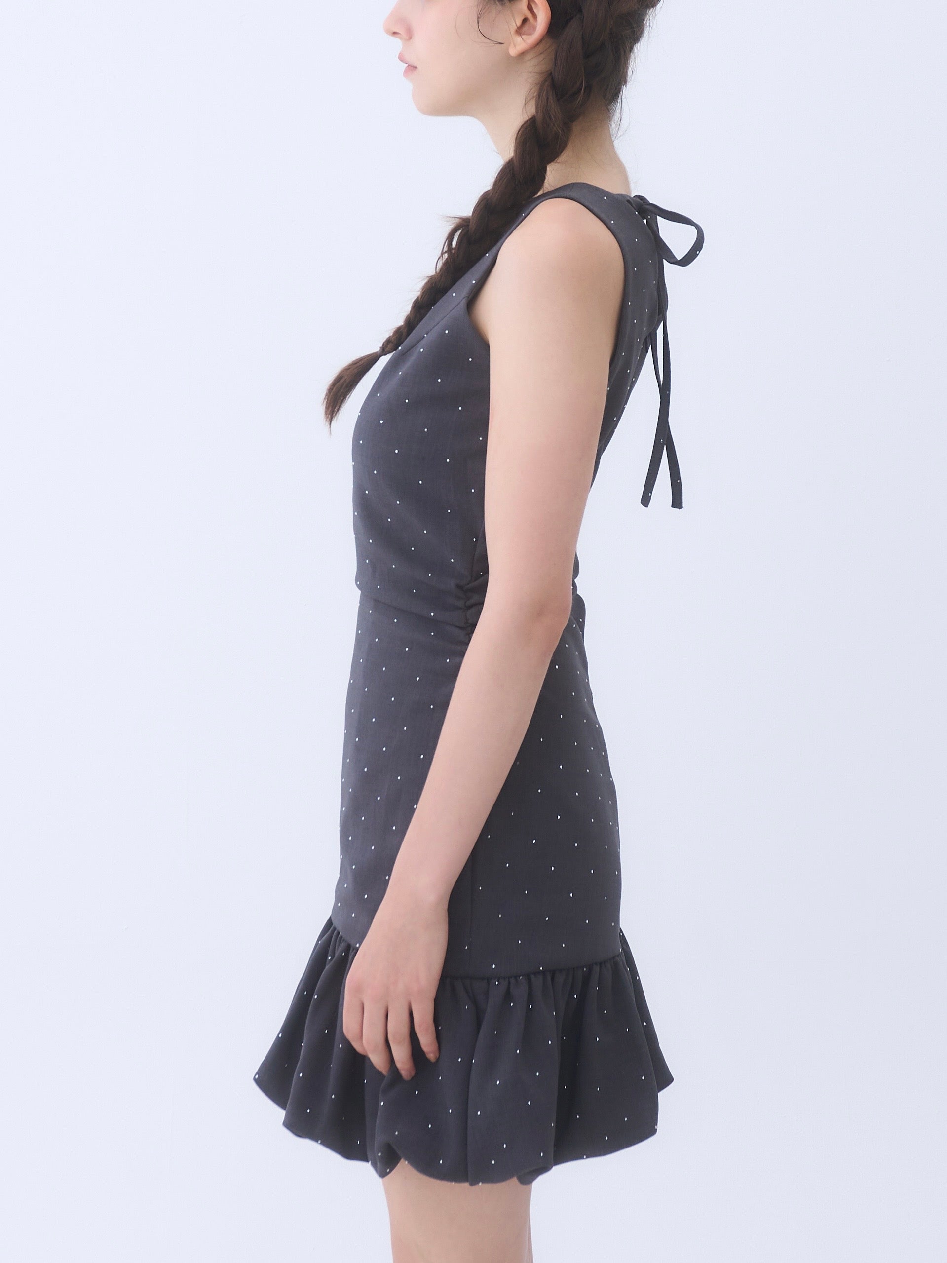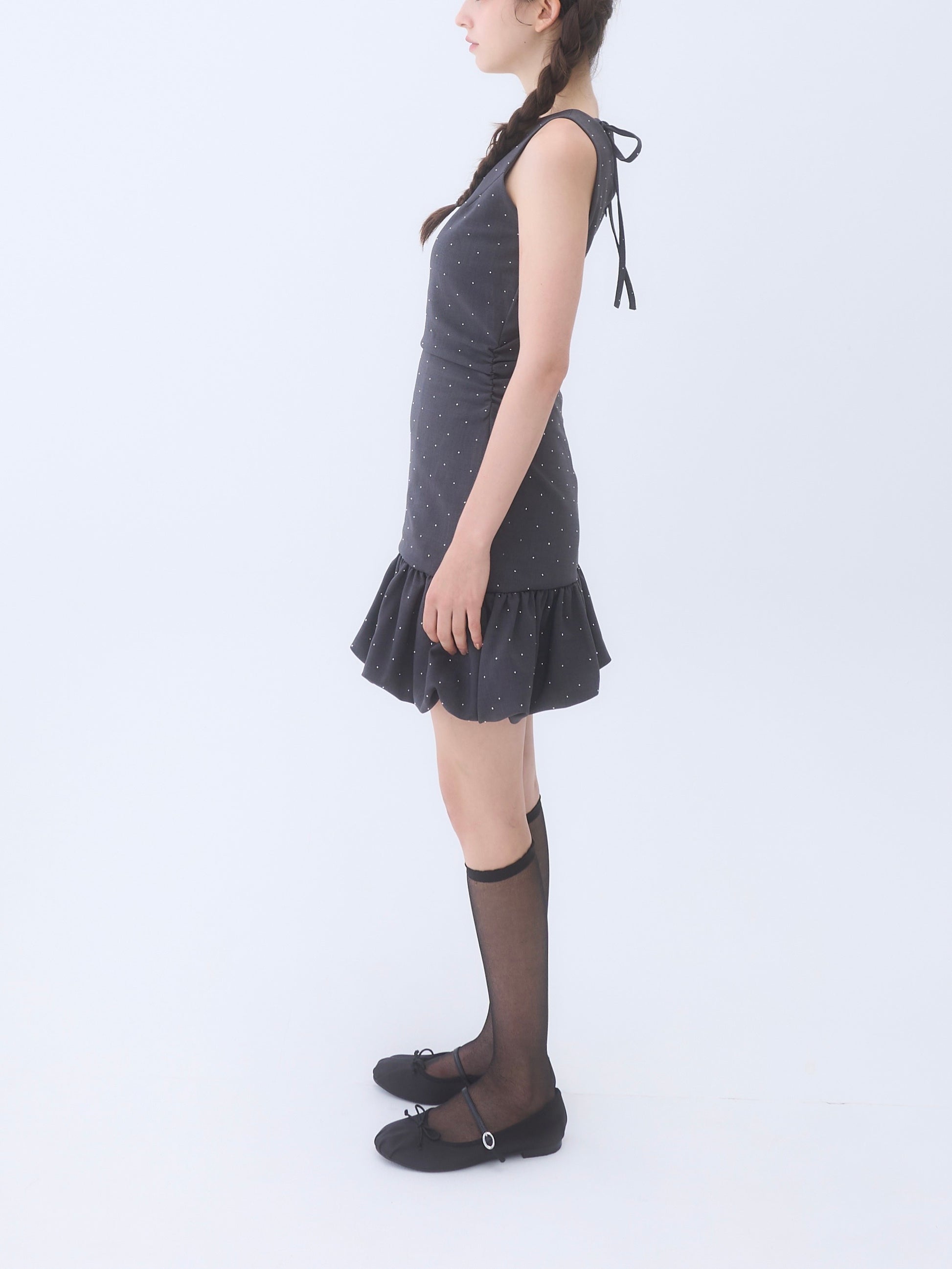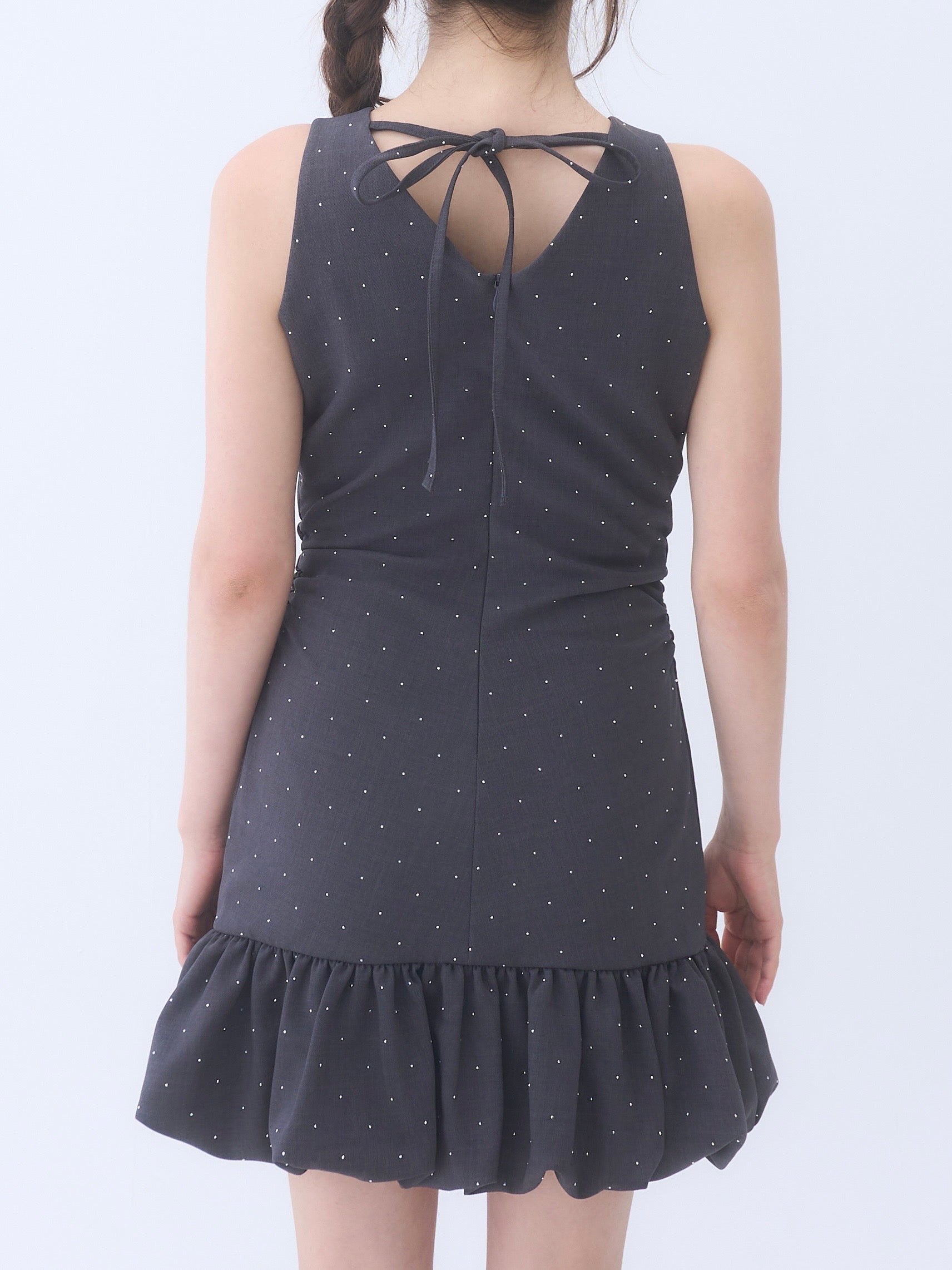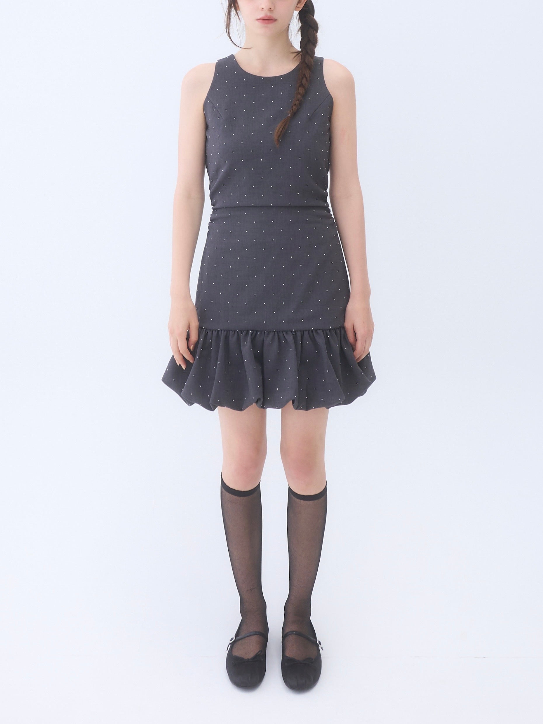 生地の性質と縫製上、ドットビジューの配列に乱れや解れが多少見られる事がございます。