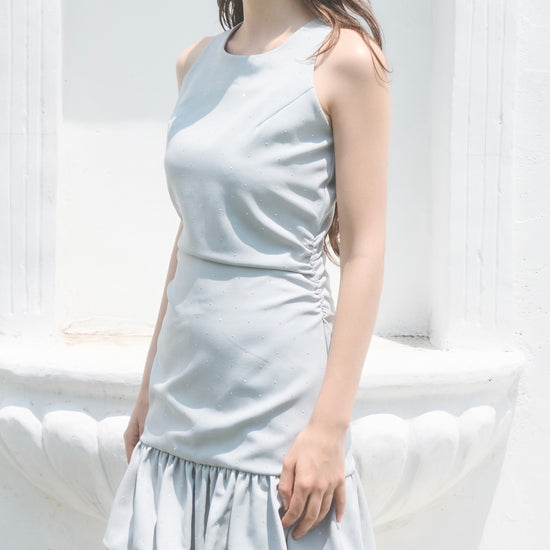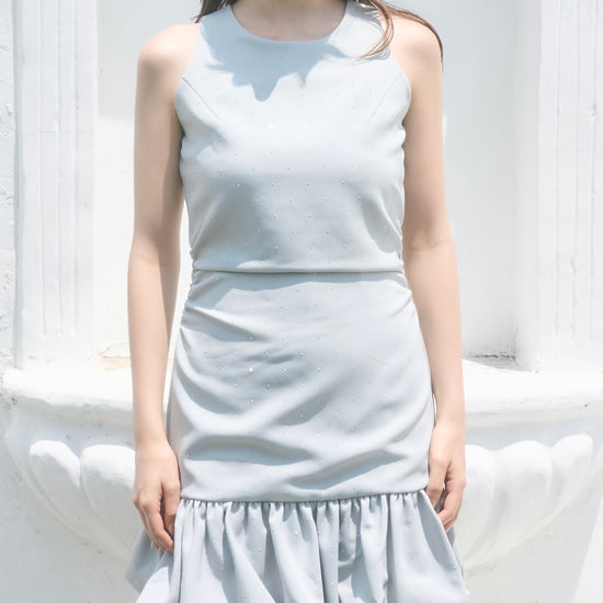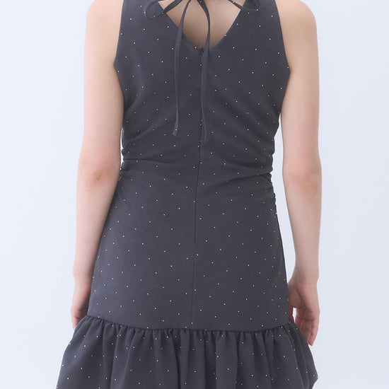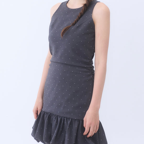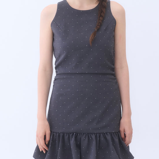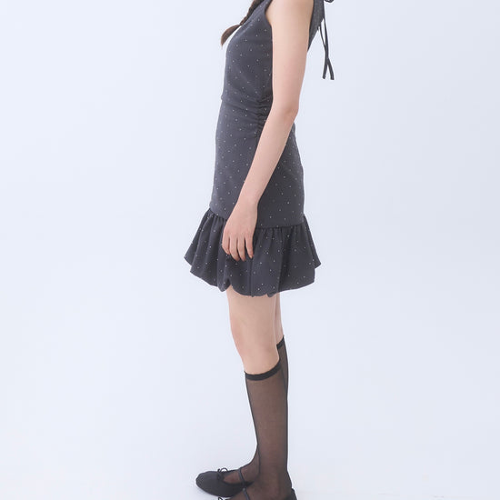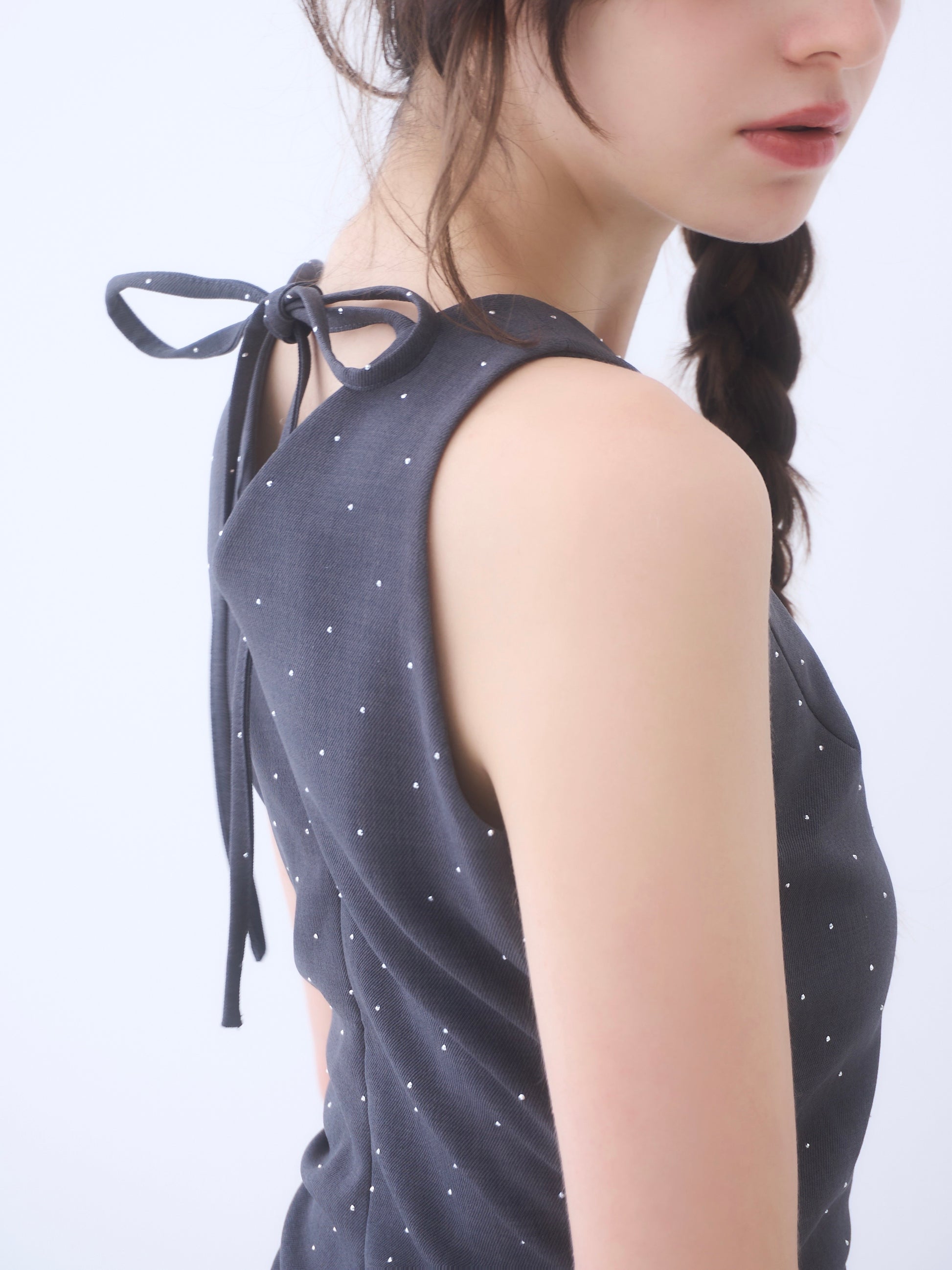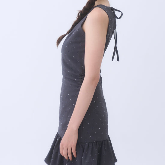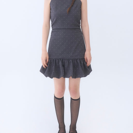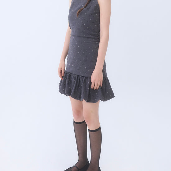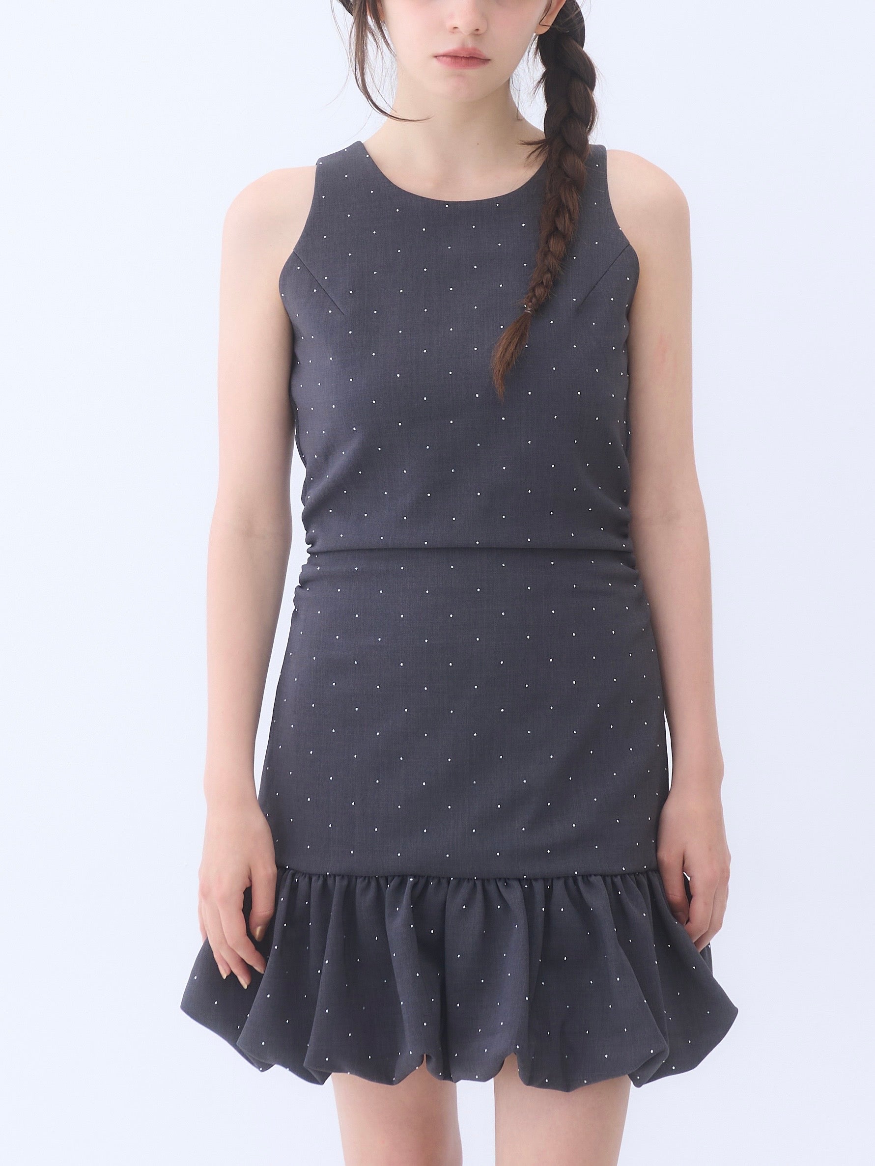 生地の性質と縫製上、ドットビジューの配列に乱れや解れが多少見られる事がございます。