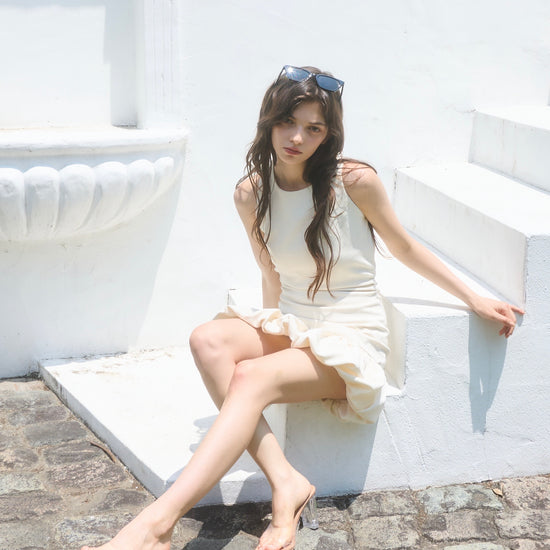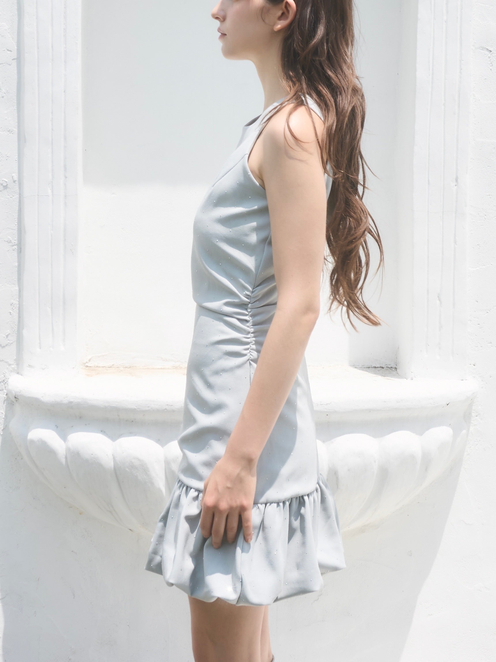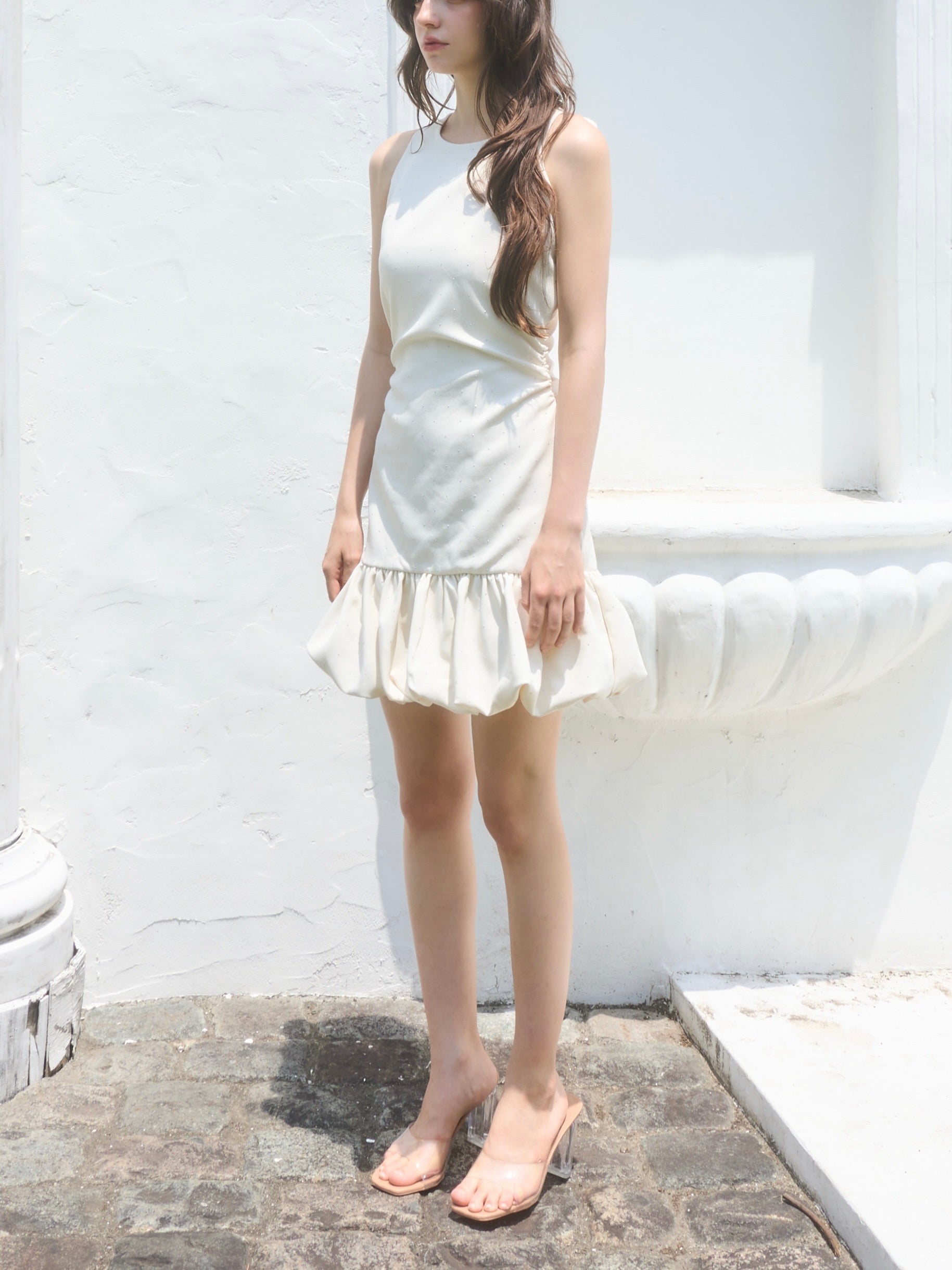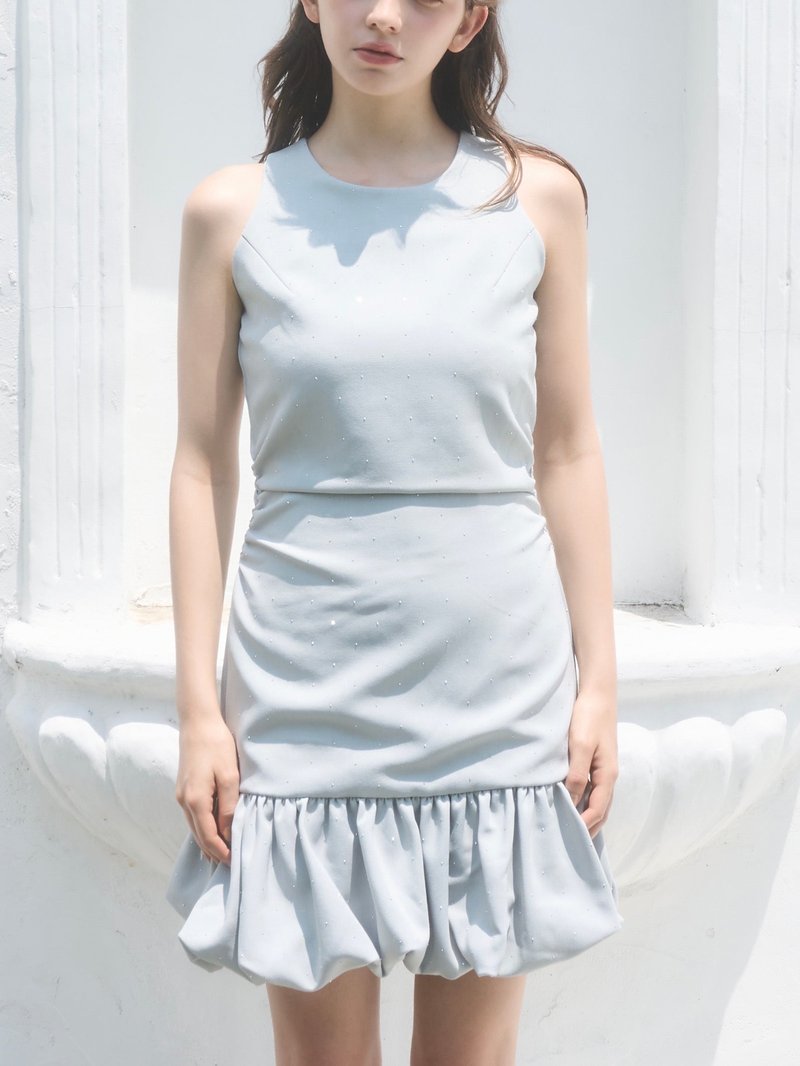 特徴的なバルーンシルエットが目を引く華やかなミニワンピース。