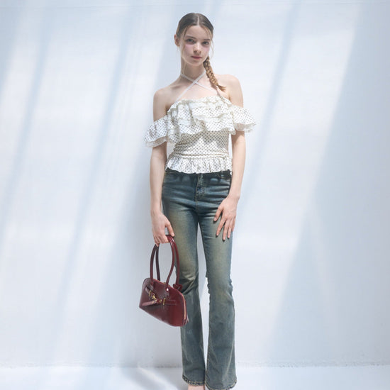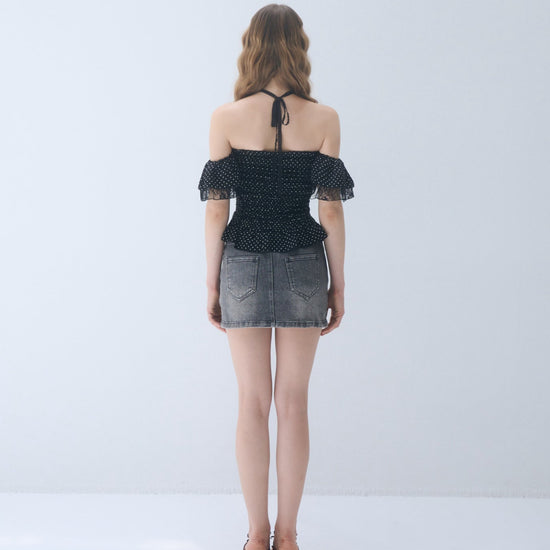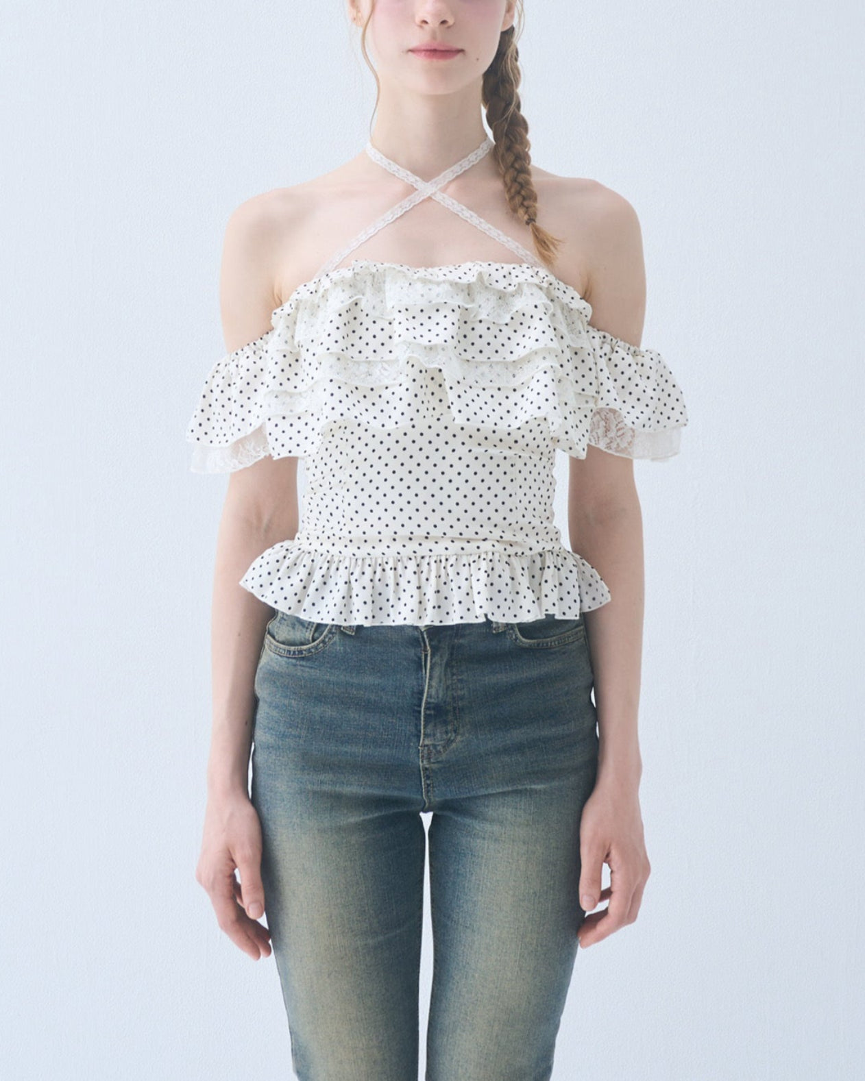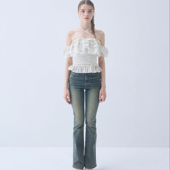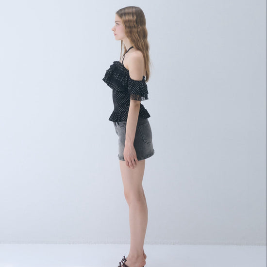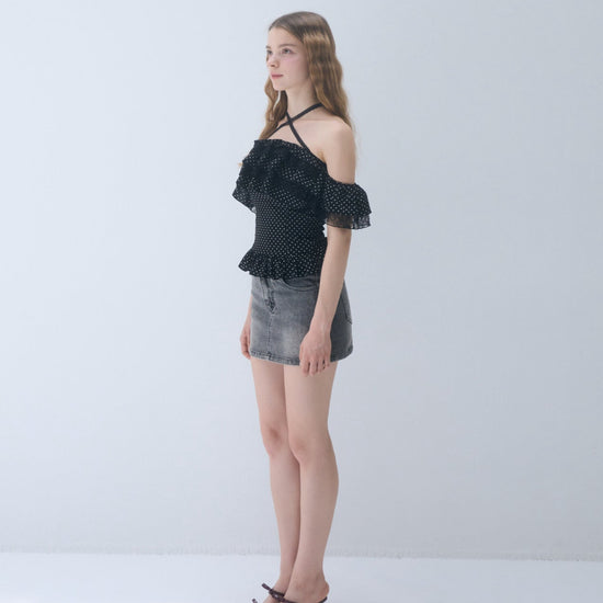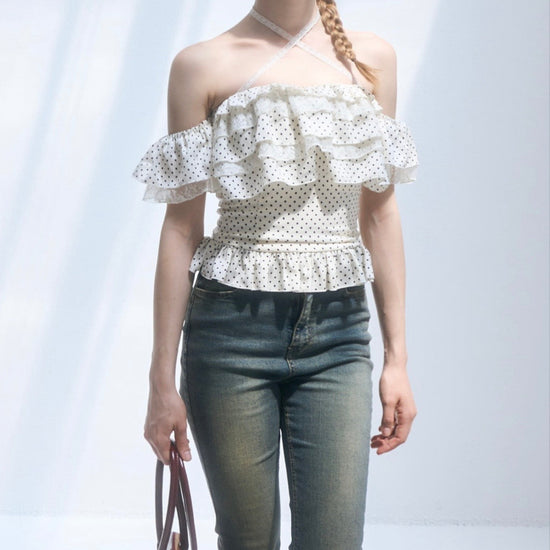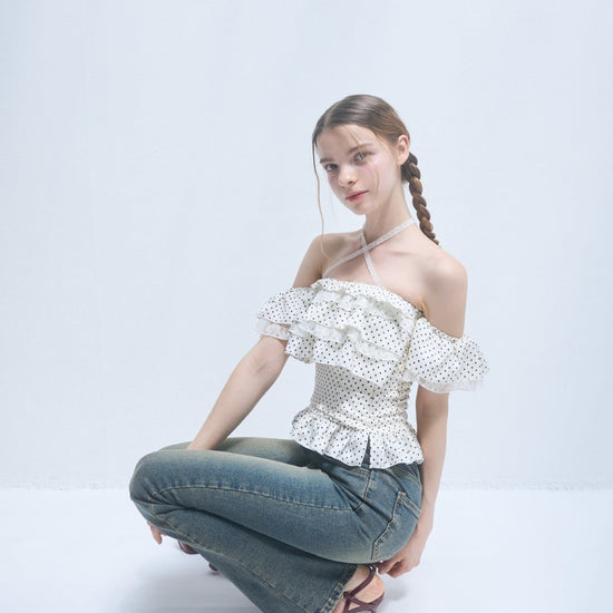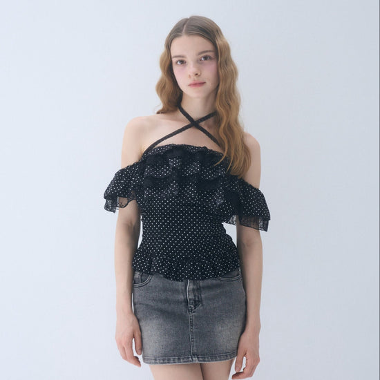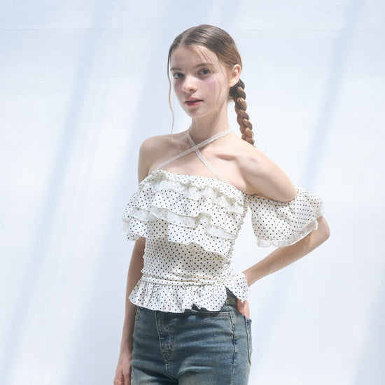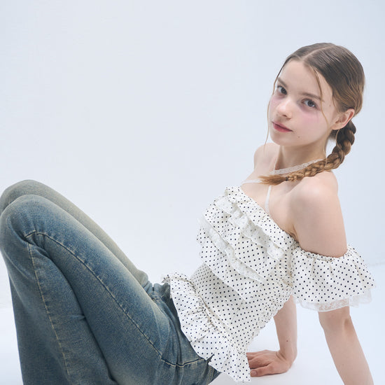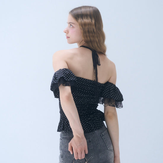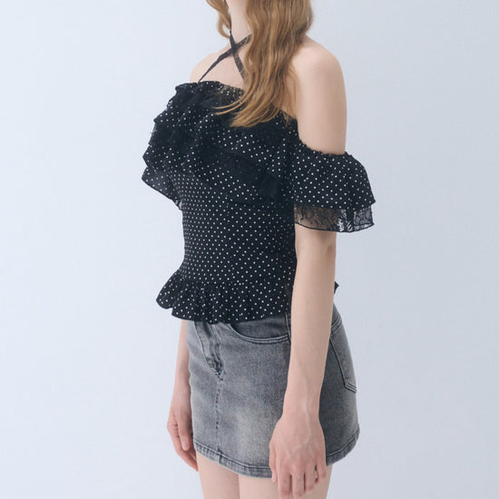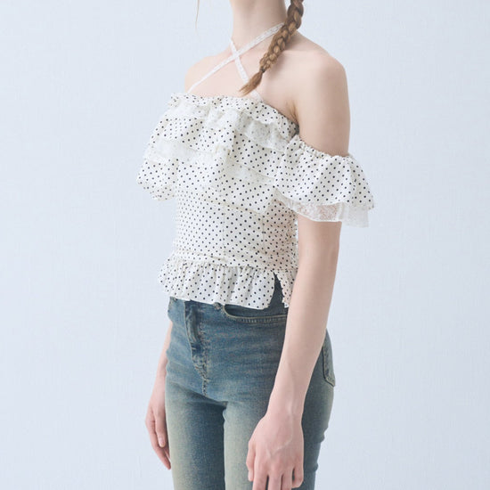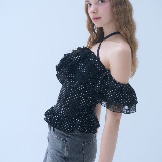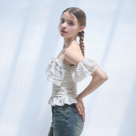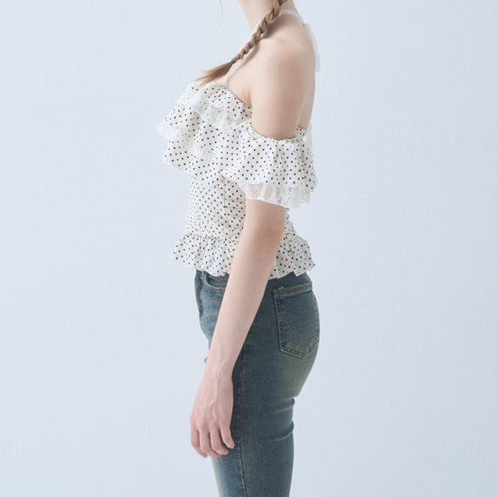 Dot frill blouse