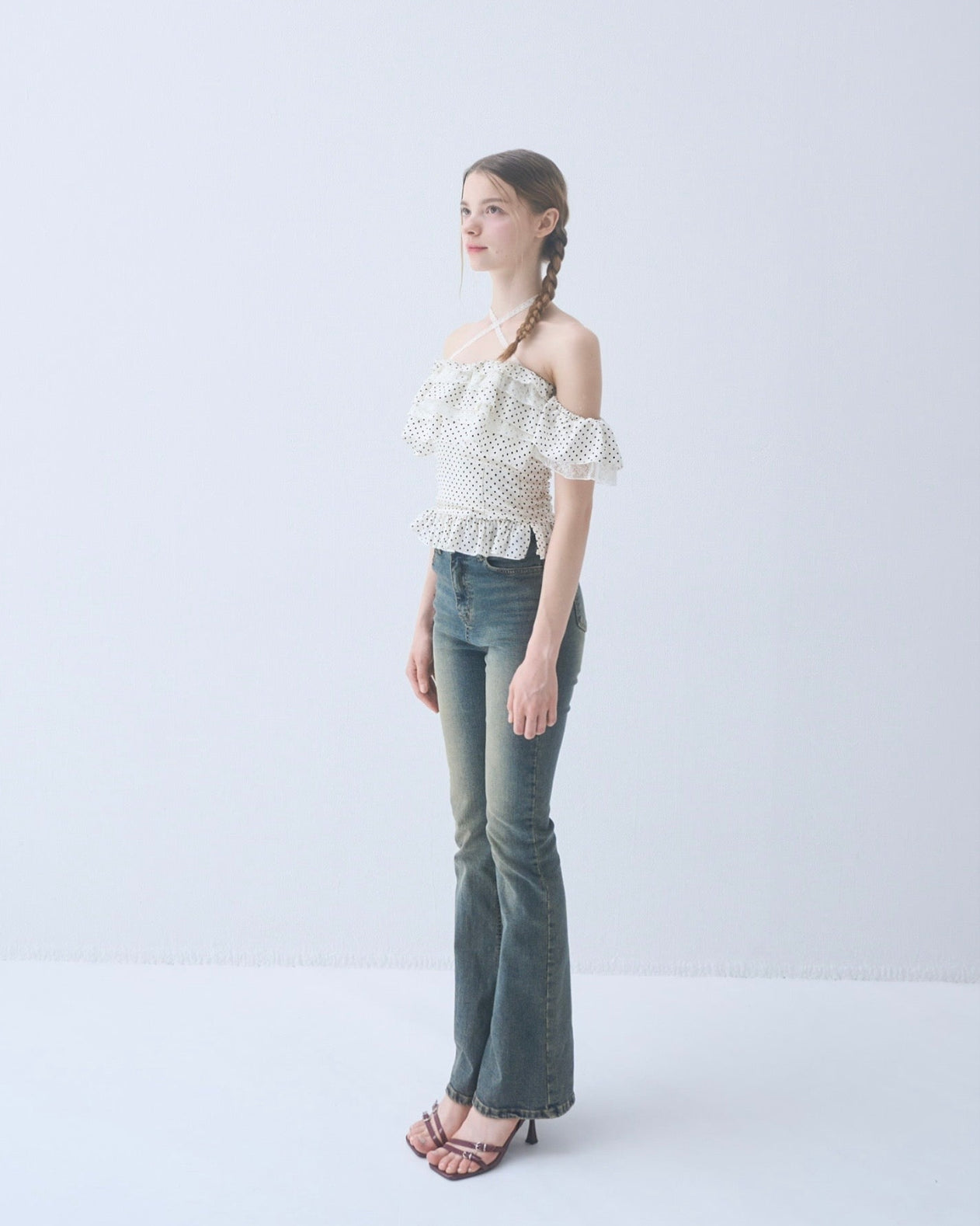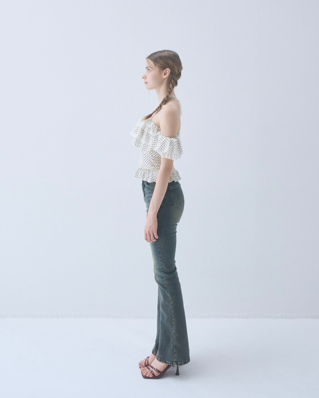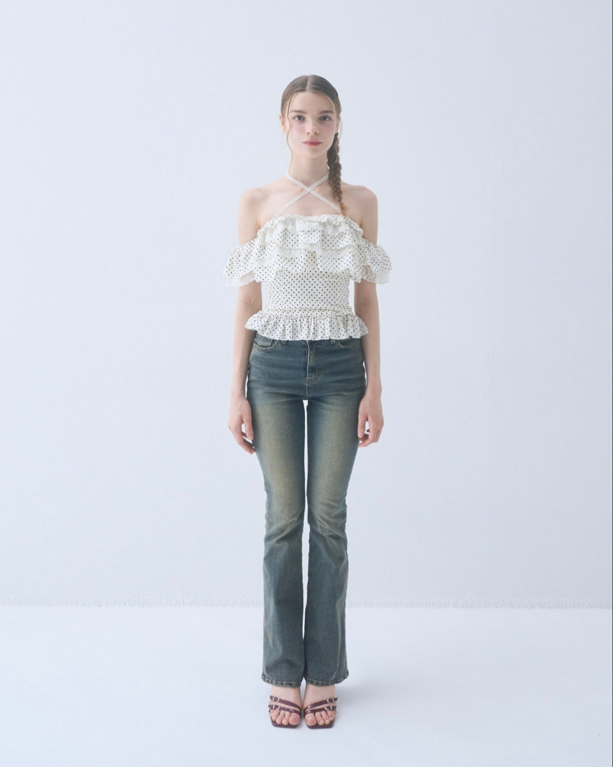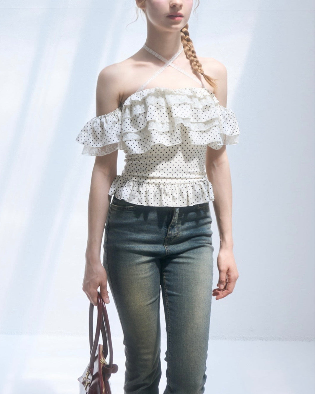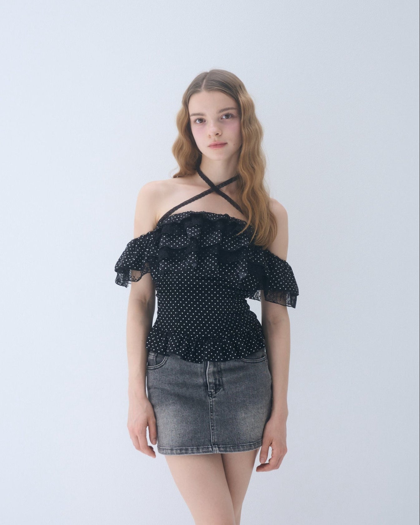 Dot frill blouse