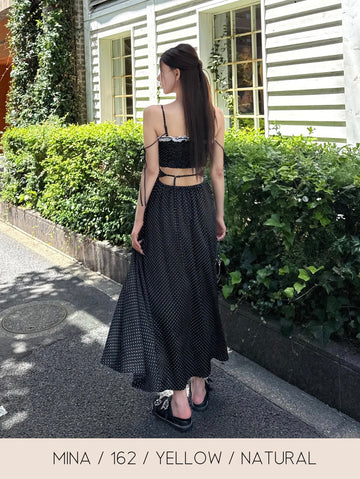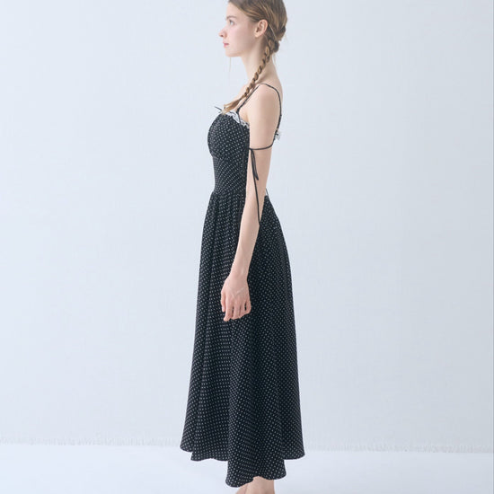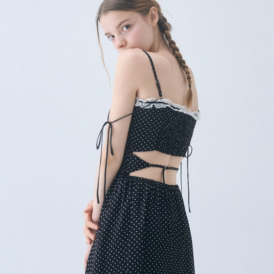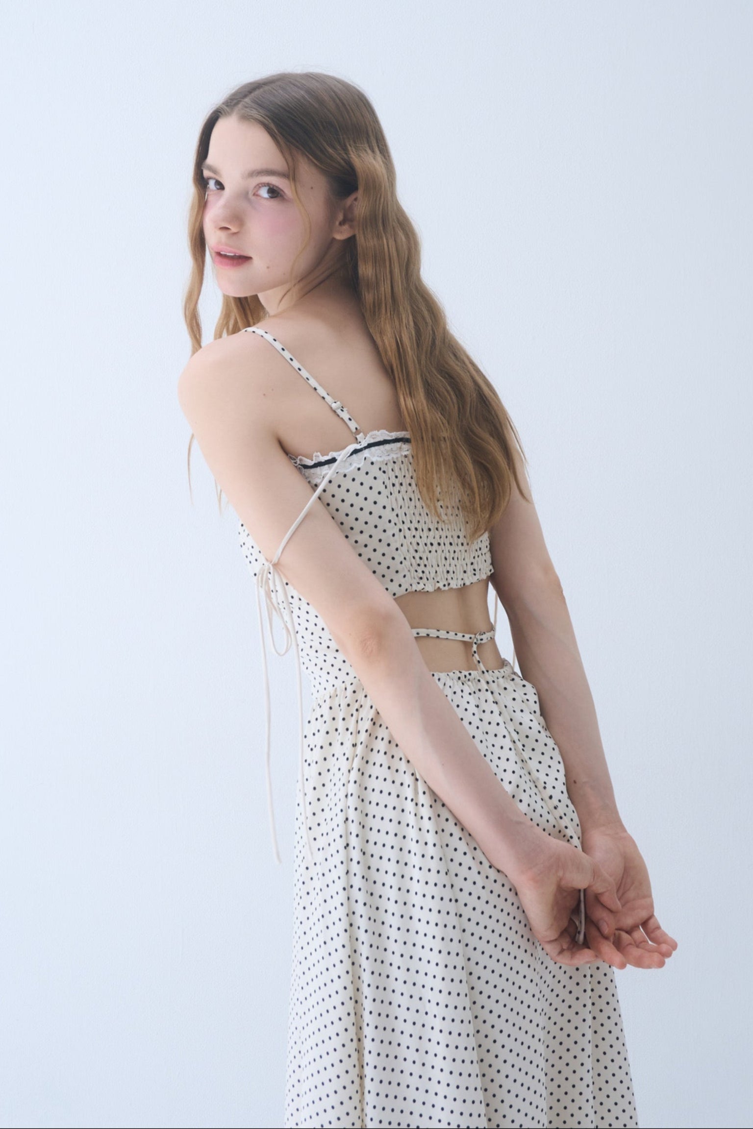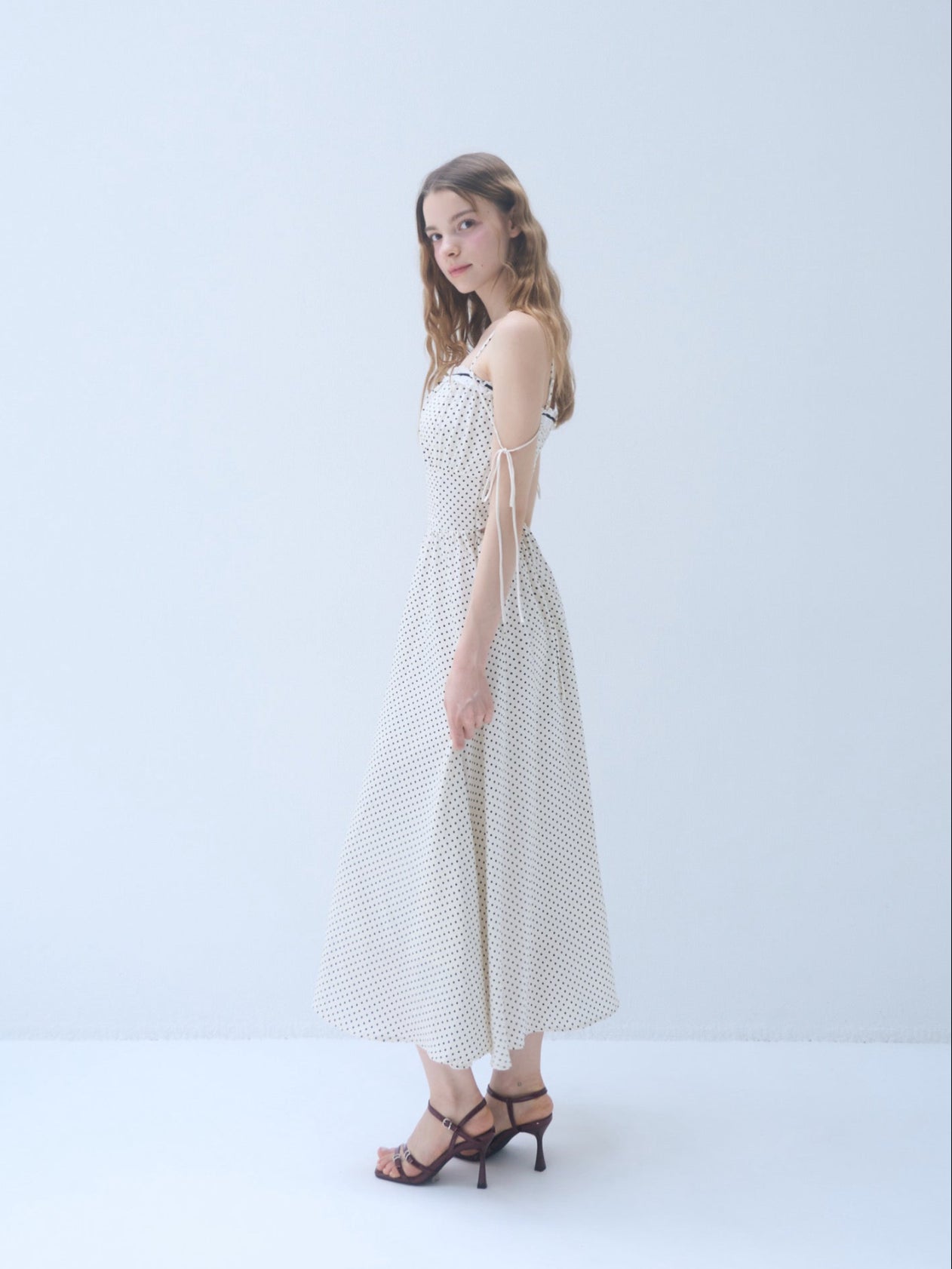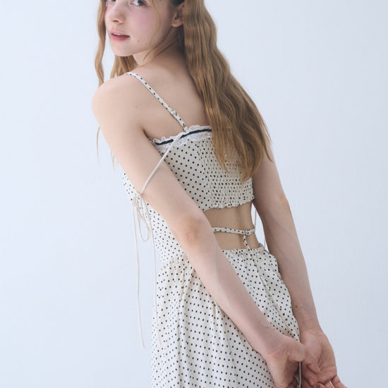 背中は大胆にカットオフされていて色っぽさも兼ね備え、可愛さと大人なイメージが混ざり合った一枚です。