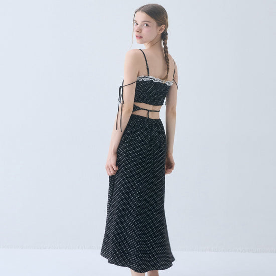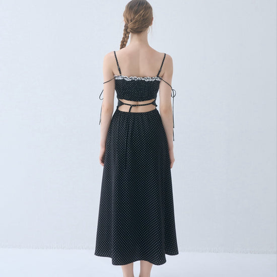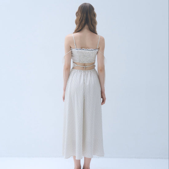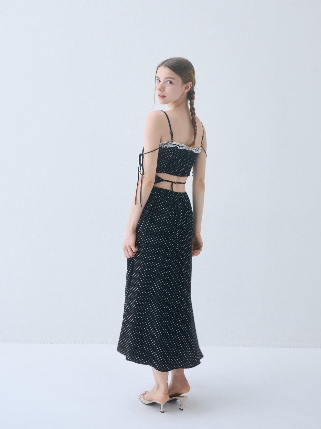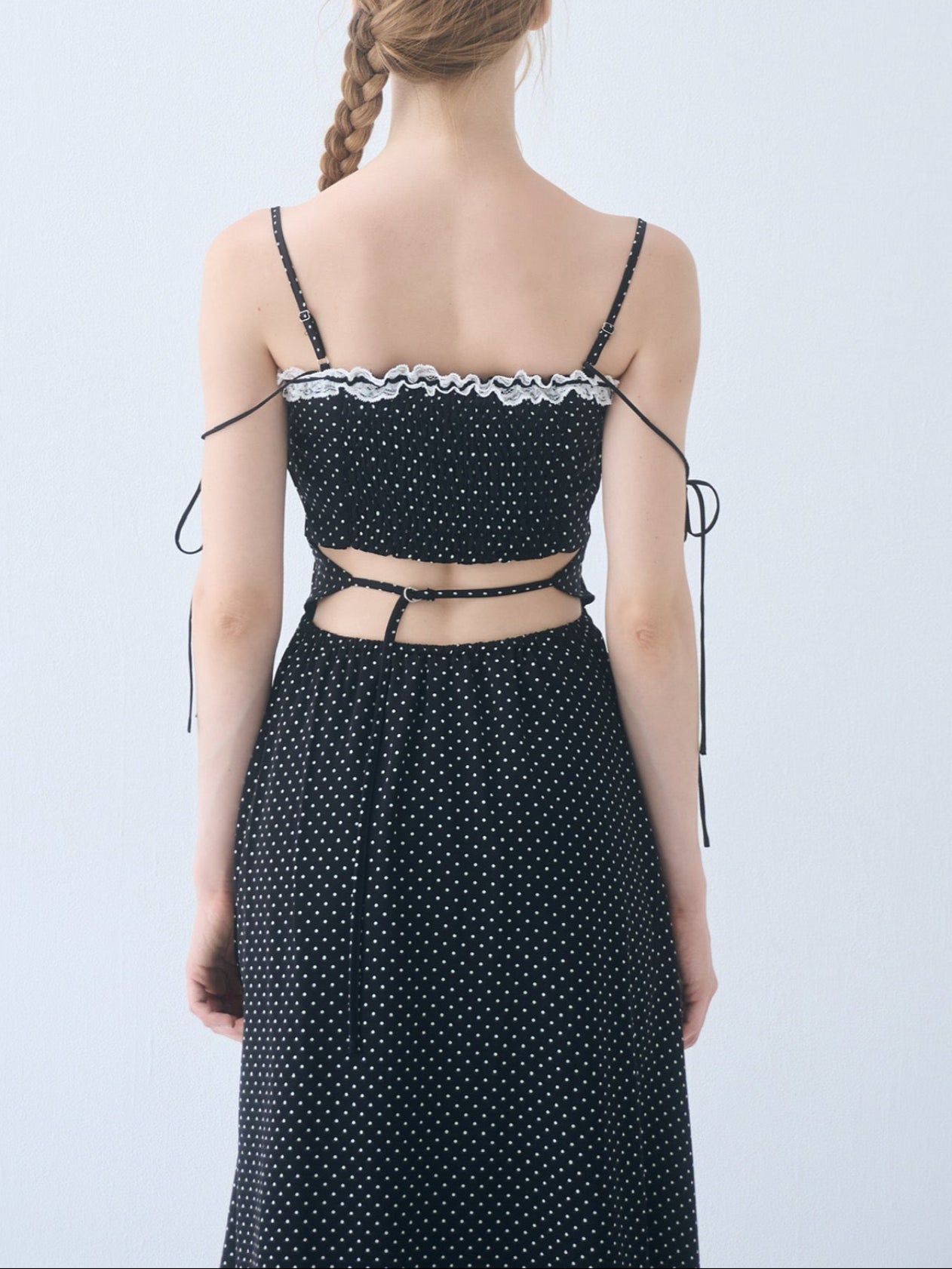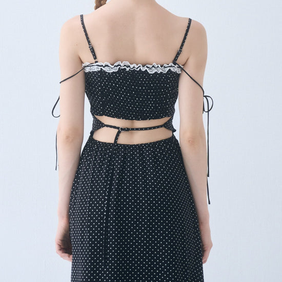 背中は大胆にカットオフされていて色っぽさも兼ね備え、可愛さと大人なイメージが混ざり合った一枚です。