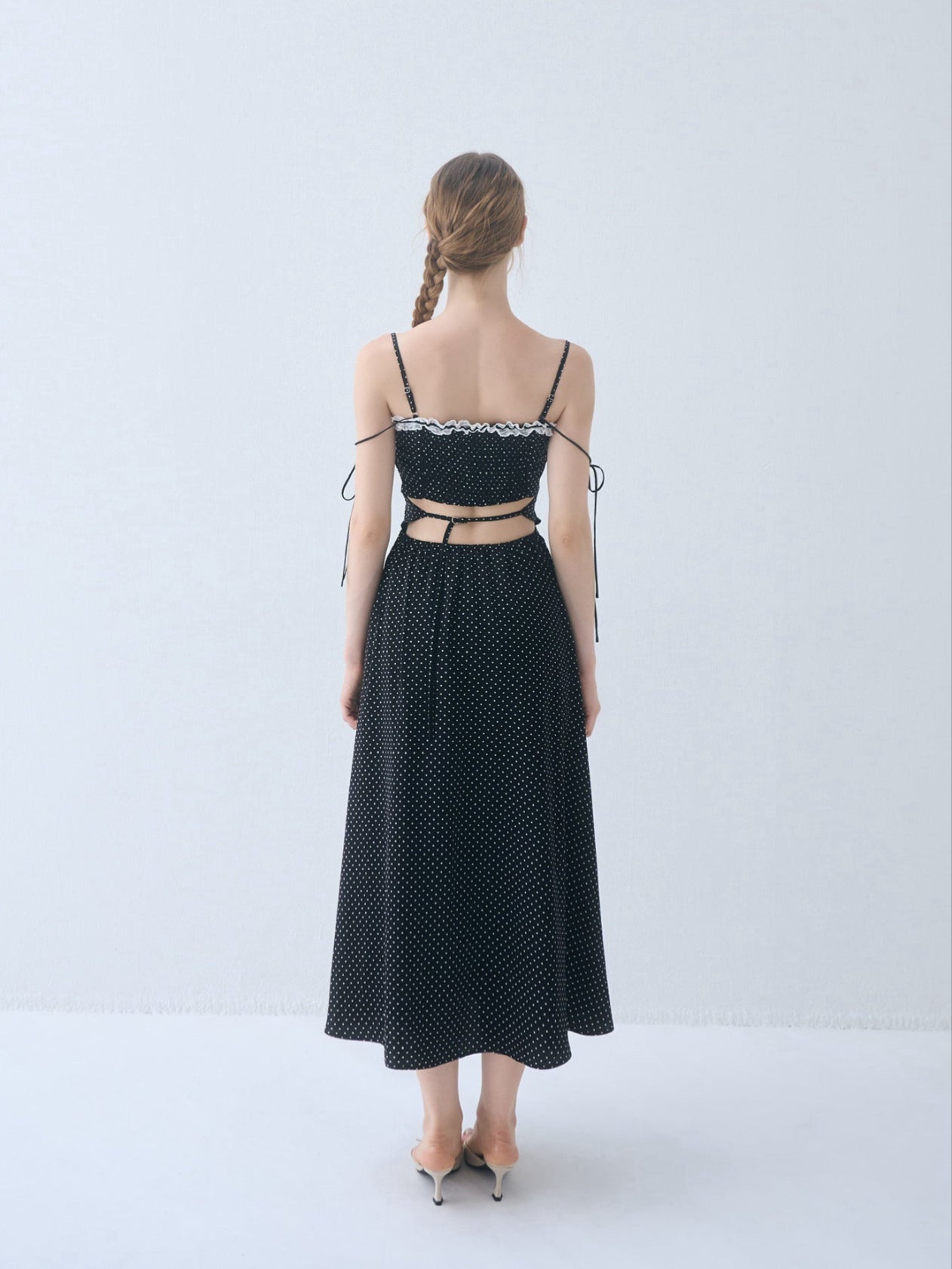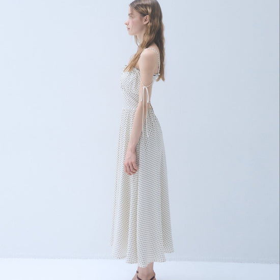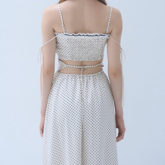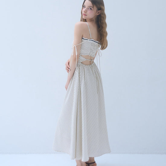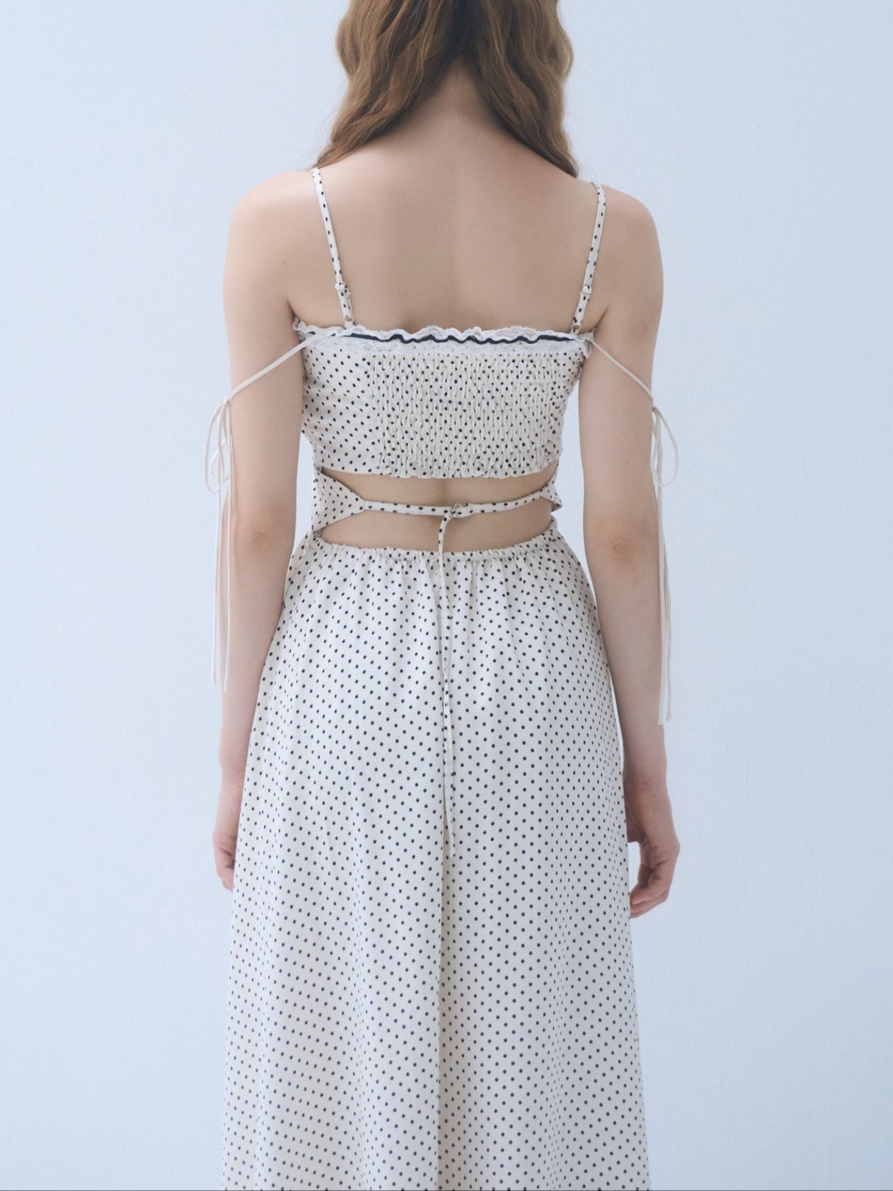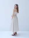 背中は大胆にカットオフされていて色っぽさも兼ね備え、可愛さと大人なイメージが混ざり合った一枚です。