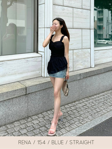 1枚で存在感のあるアイテムなので、デニムやミニ丈のパンツなどのシンプルなボトムスと相性抜群。