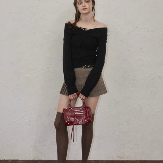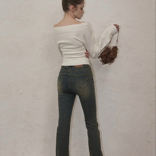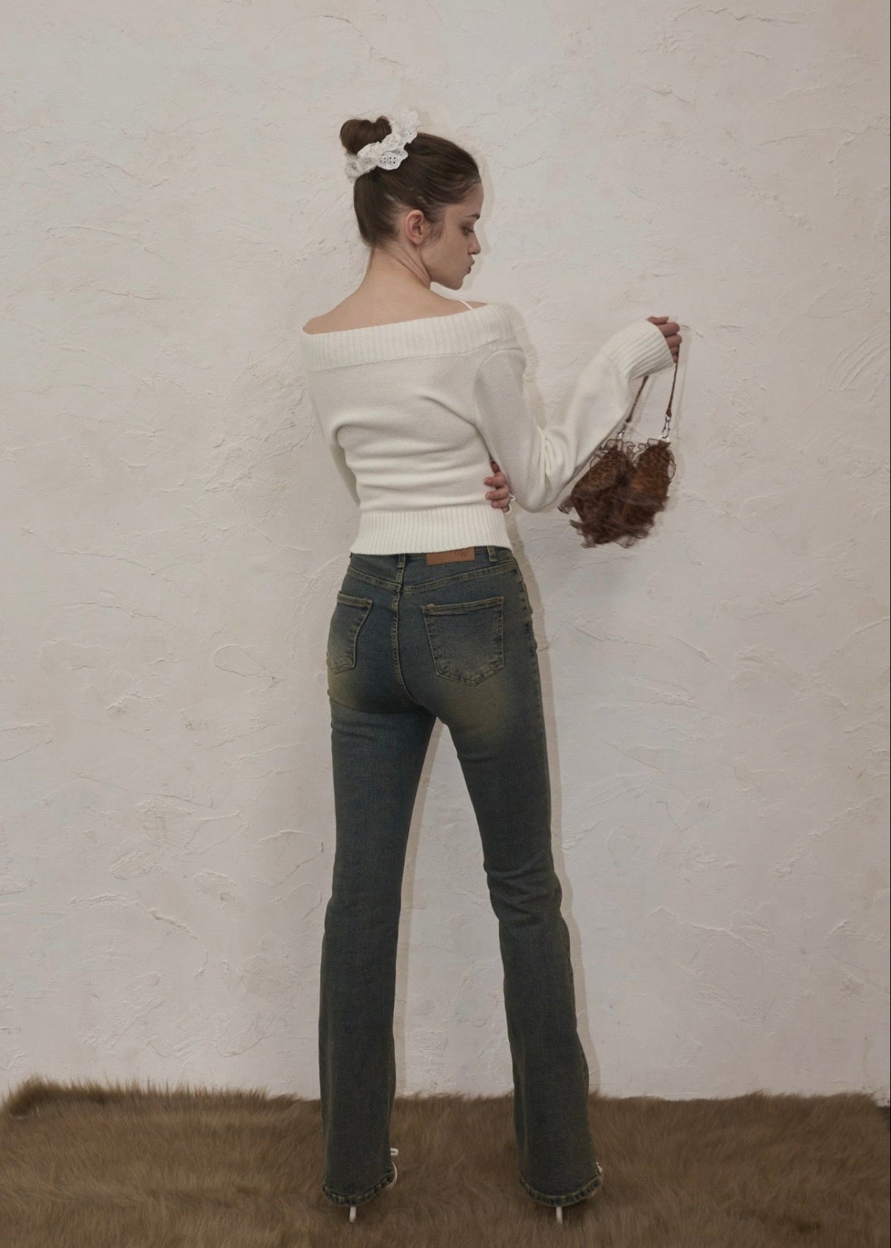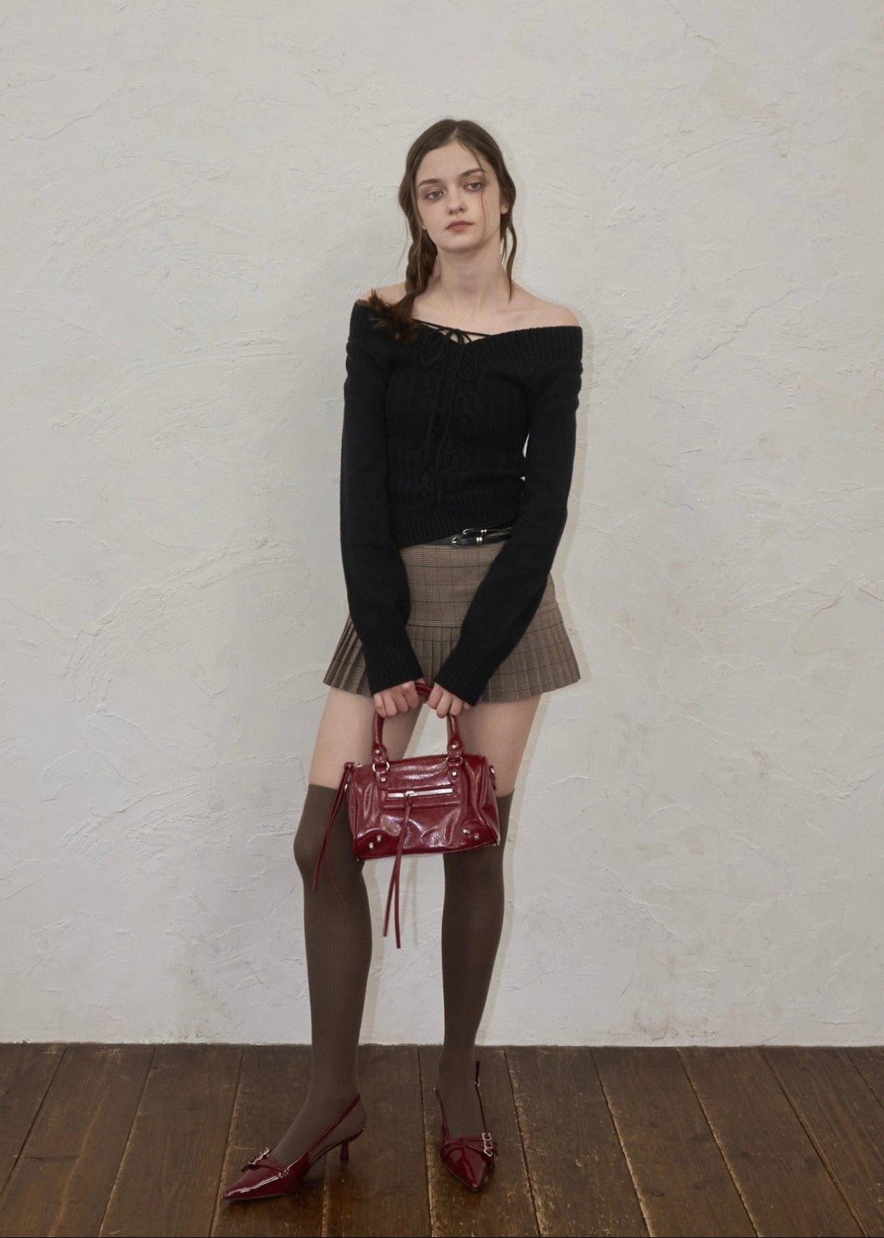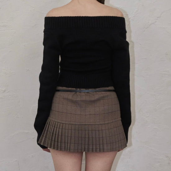 デコルテを美しく見せるVネックとしても、オフショルダーとしても着られるデザインで、シーンに合わせて印象を変えられます。