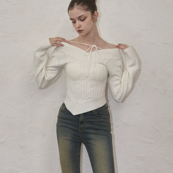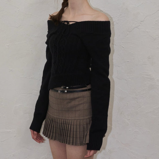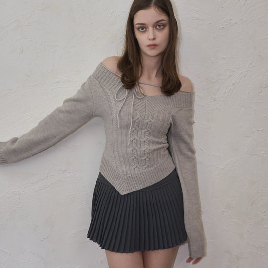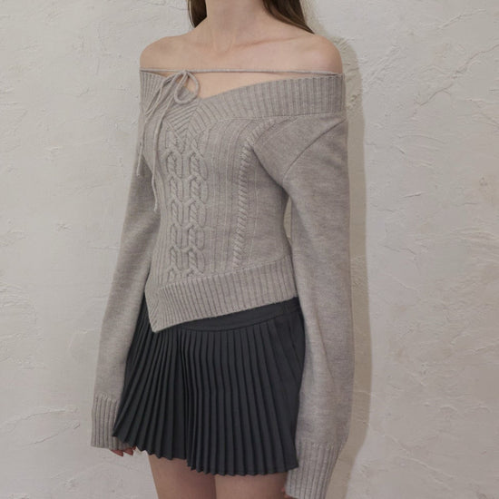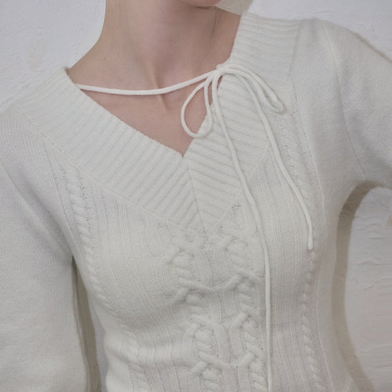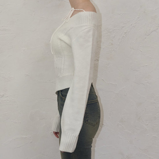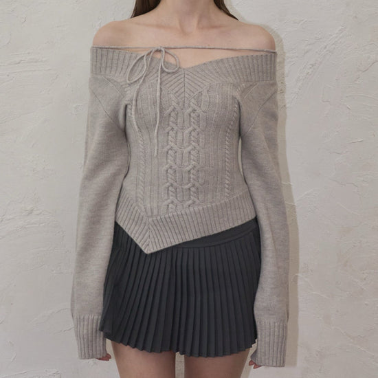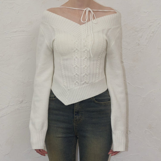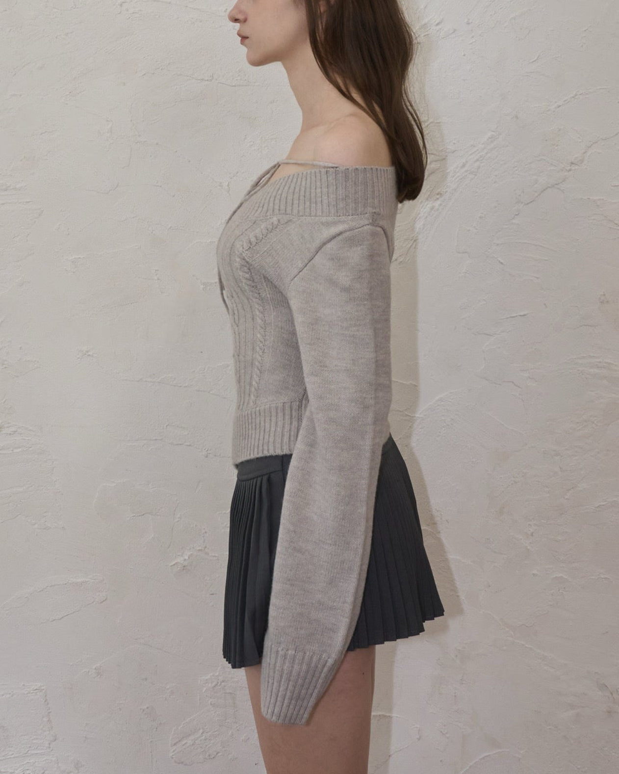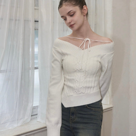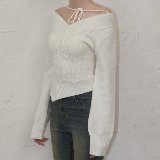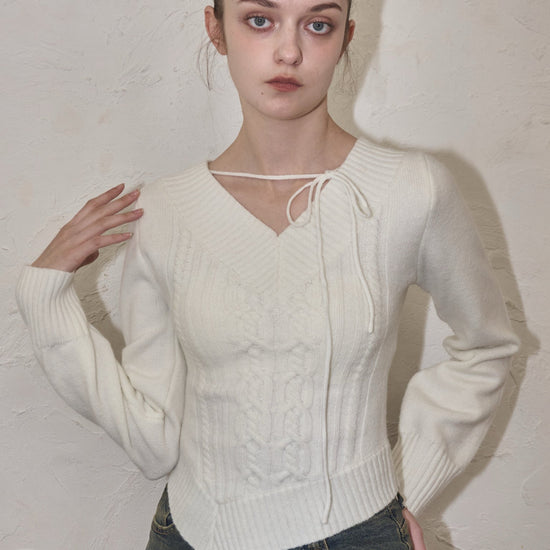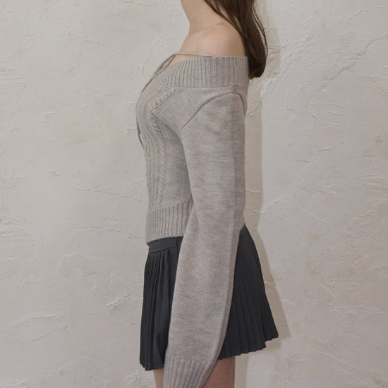 フェミニンなディテールが詰まった、2WAY仕様のケーブルニットプルオーバー。