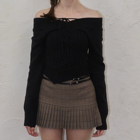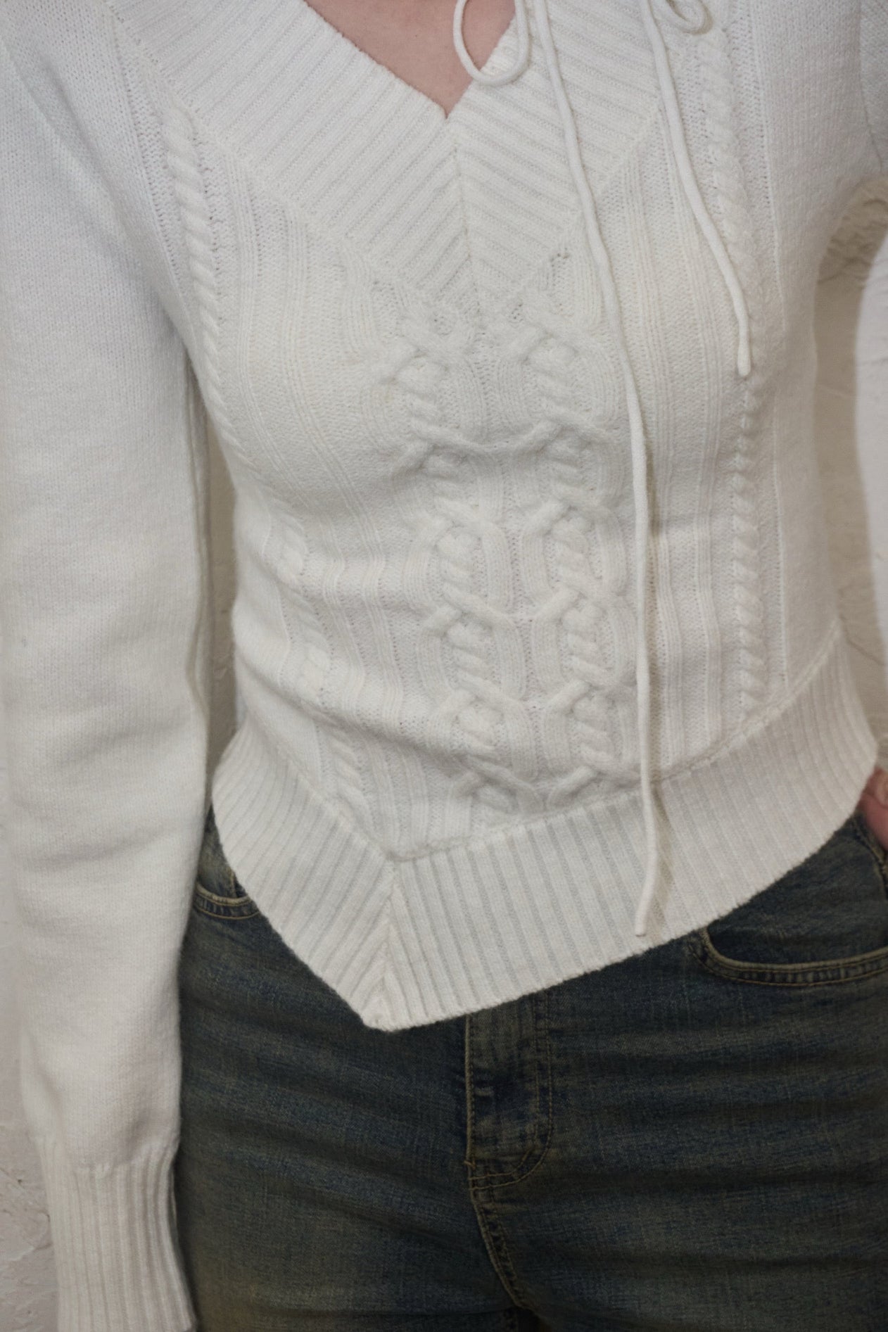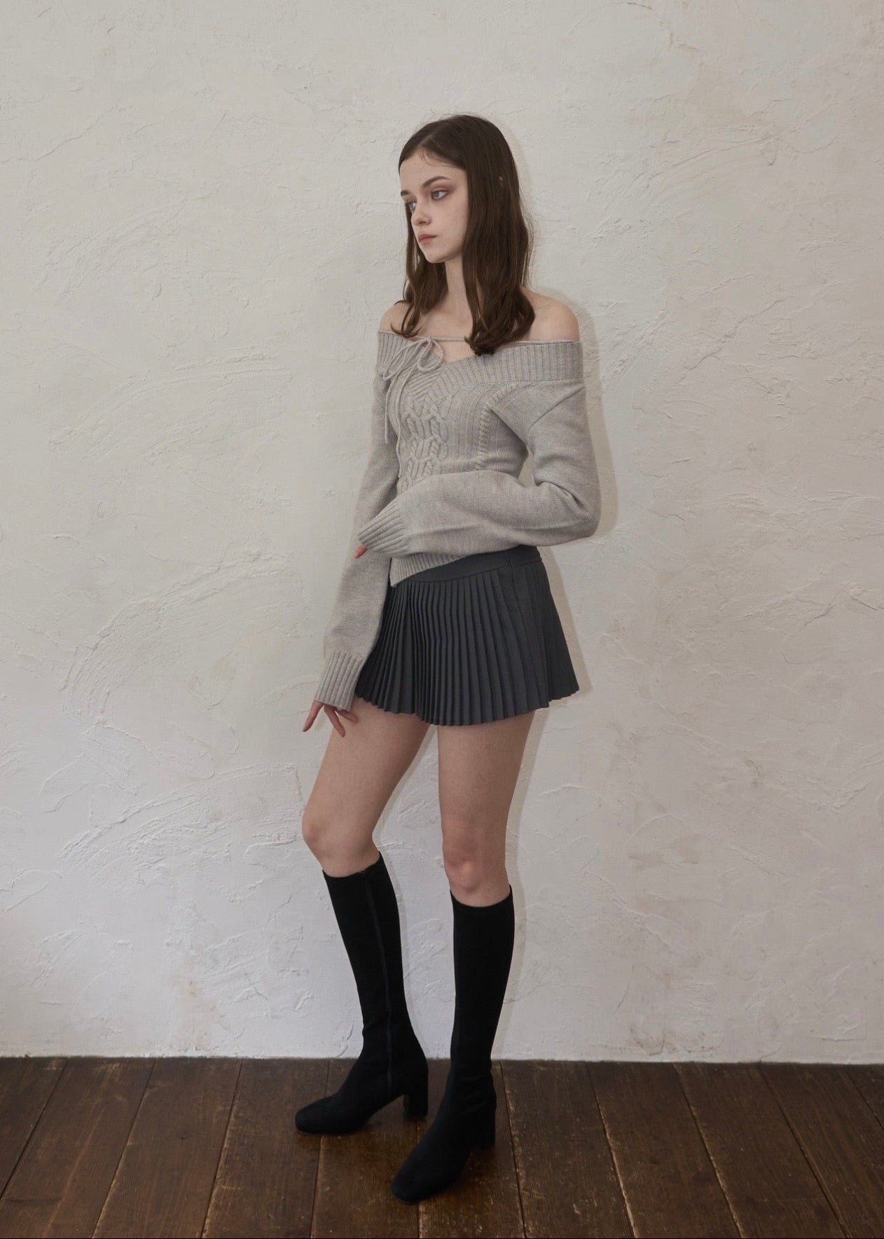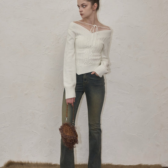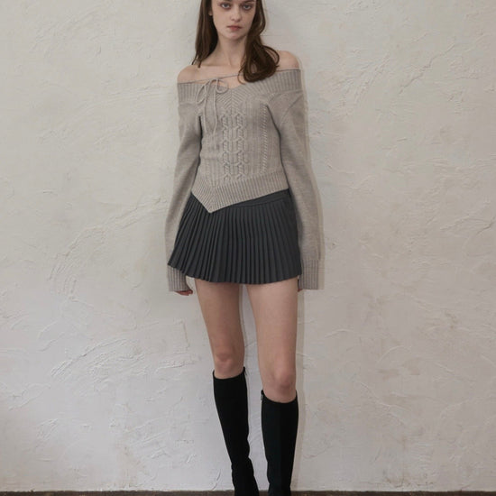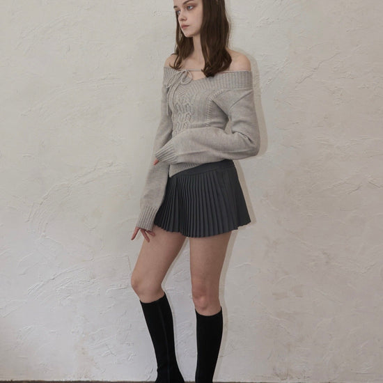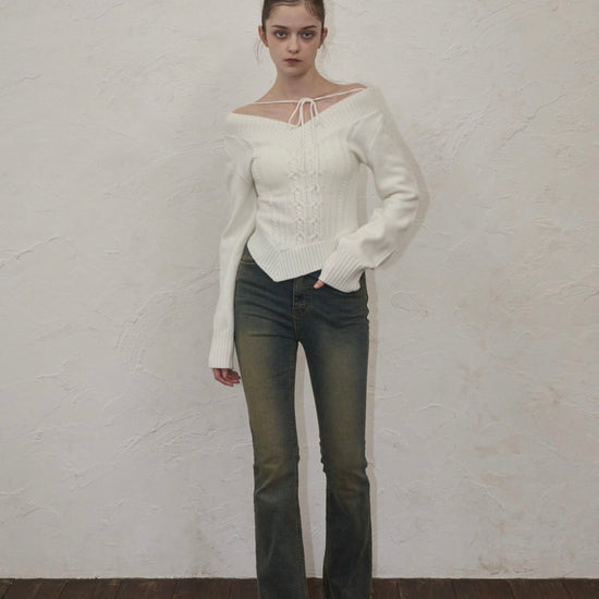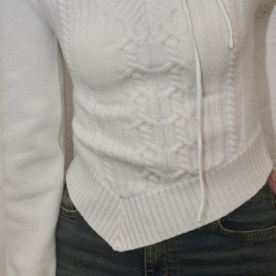 フェミニンなディテールが詰まった、2WAY仕様のケーブルニットプルオーバー。