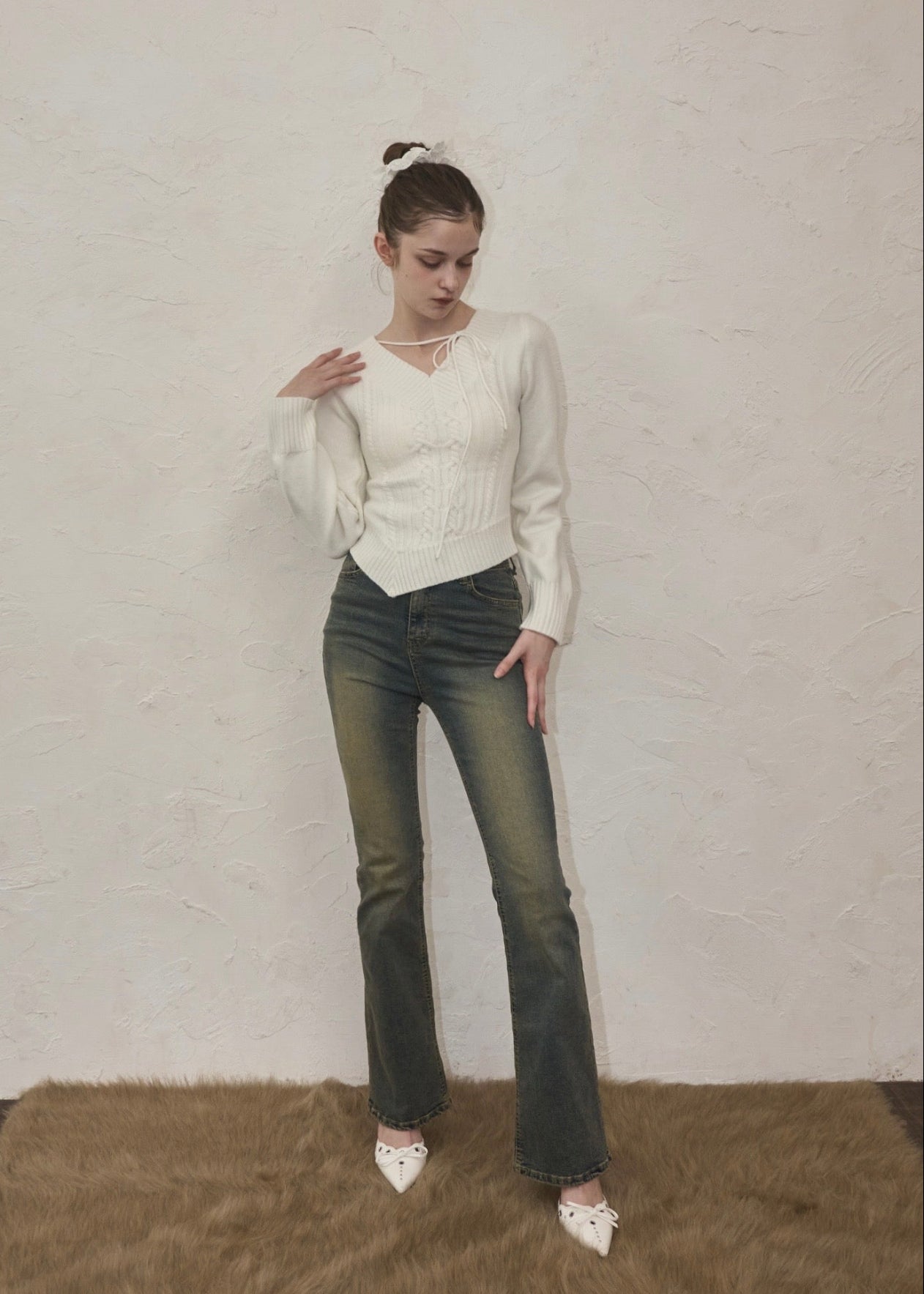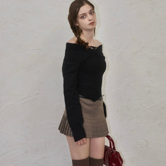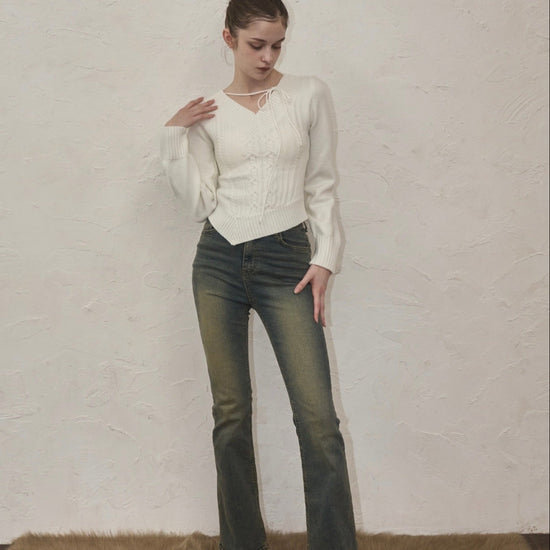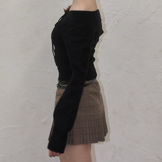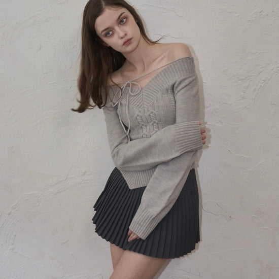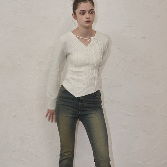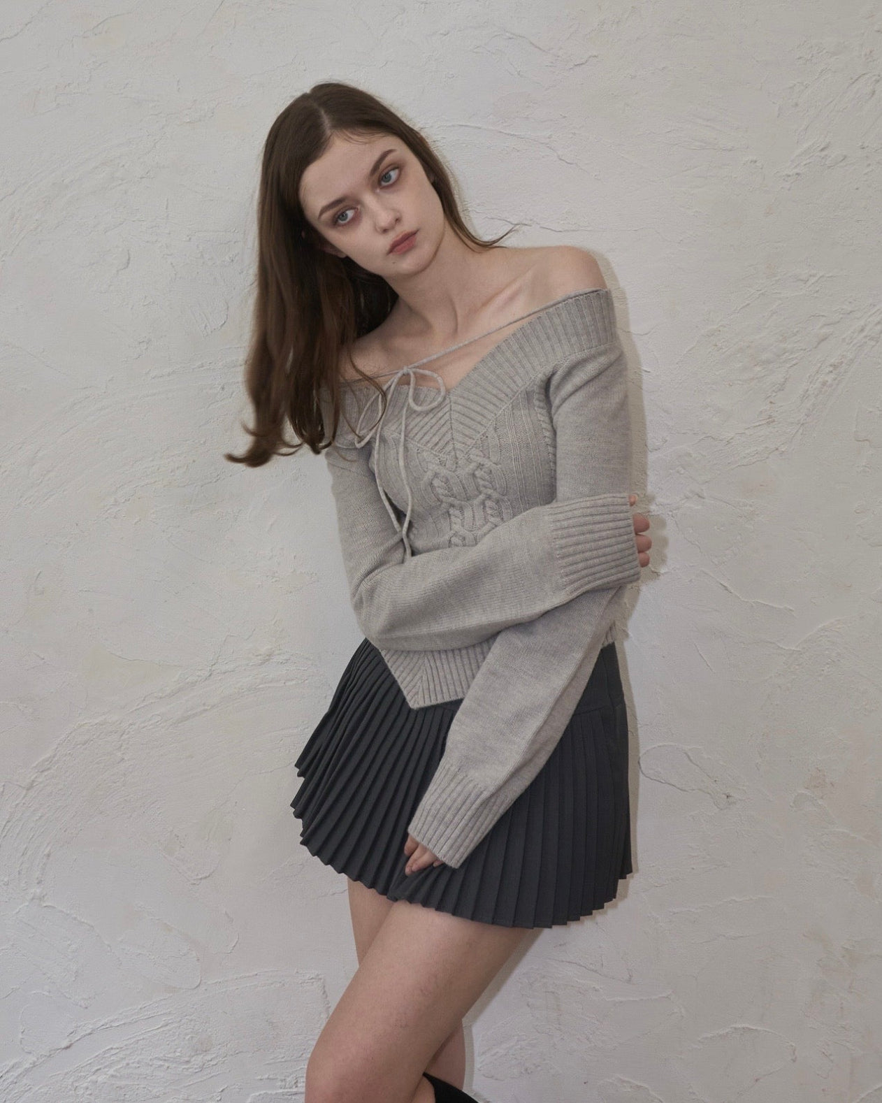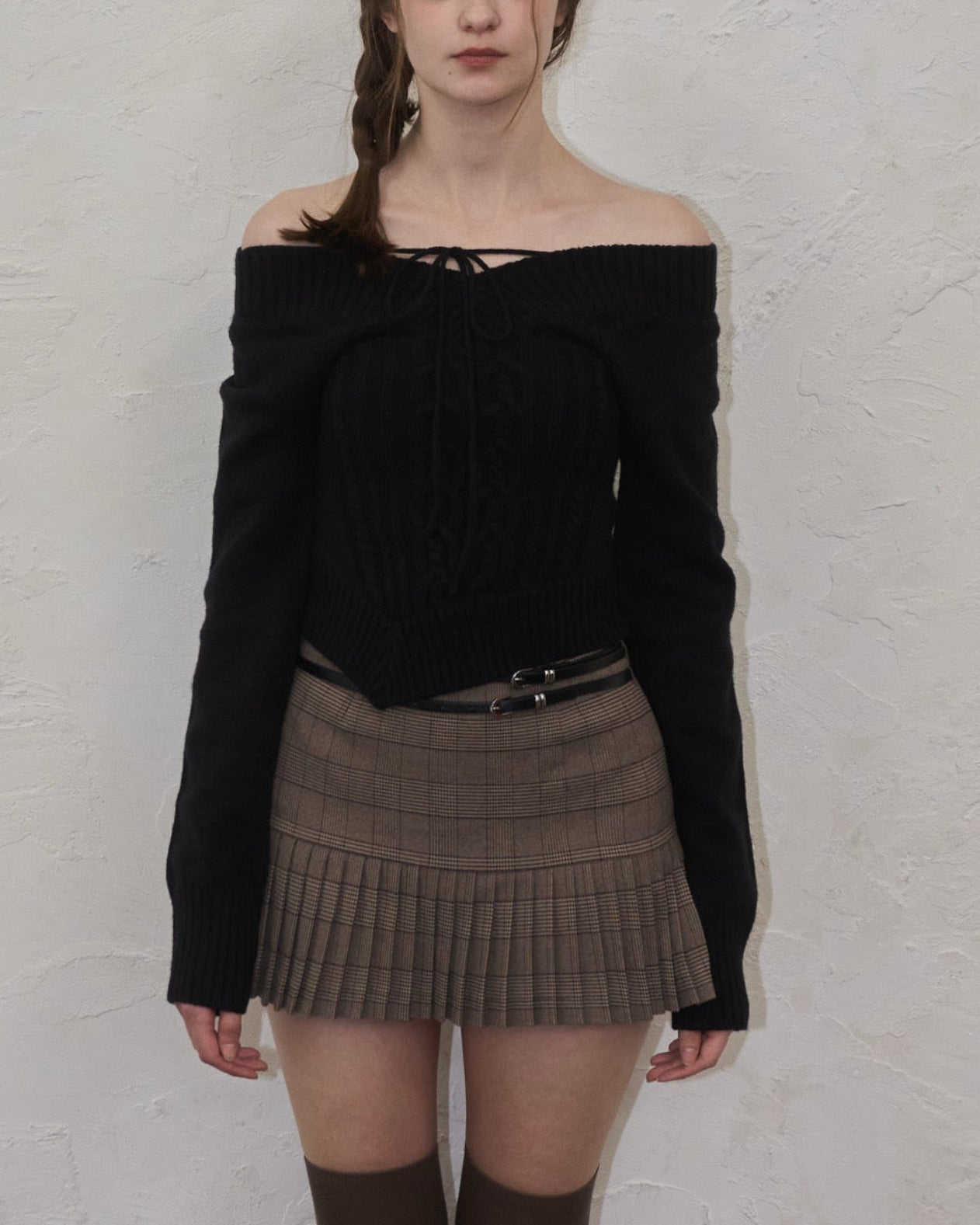 フェミニンなディテールが詰まった、2WAY仕様のケーブルニットプルオーバー。
