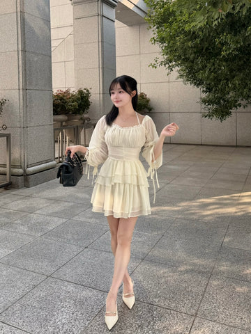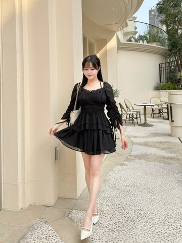 ボリューム抑えめなシフォンのフレアなので可愛いらしくなりすぎず、ミニ丈でも大人っぽく上品な印象でご着用出来ます。