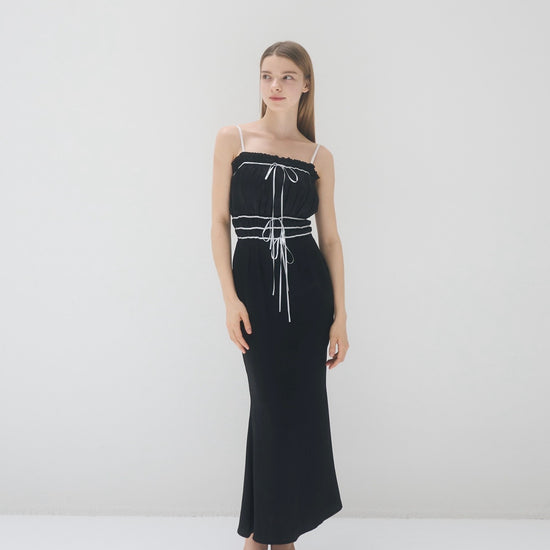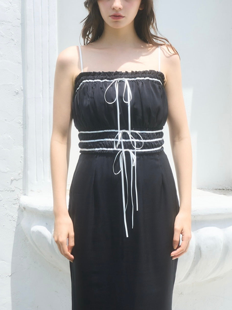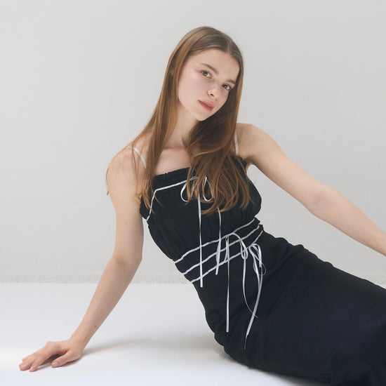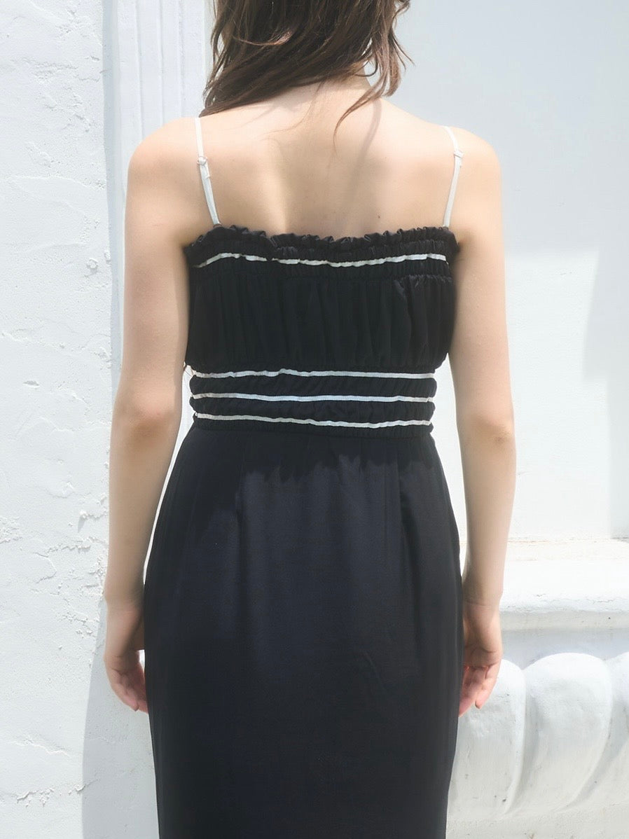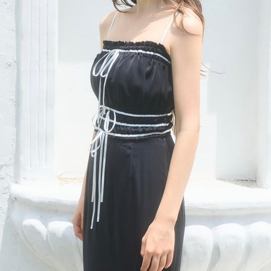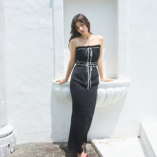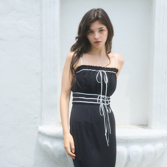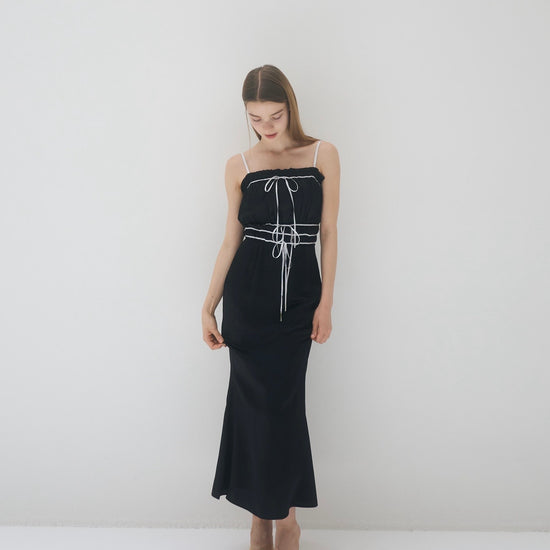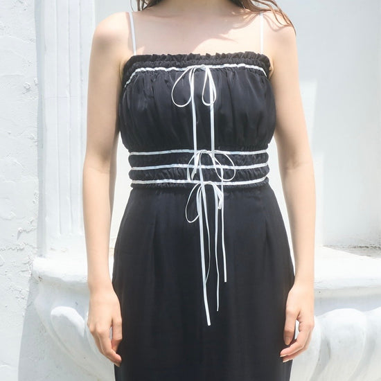 コントラストが目を引くバイカラーワンピース。
