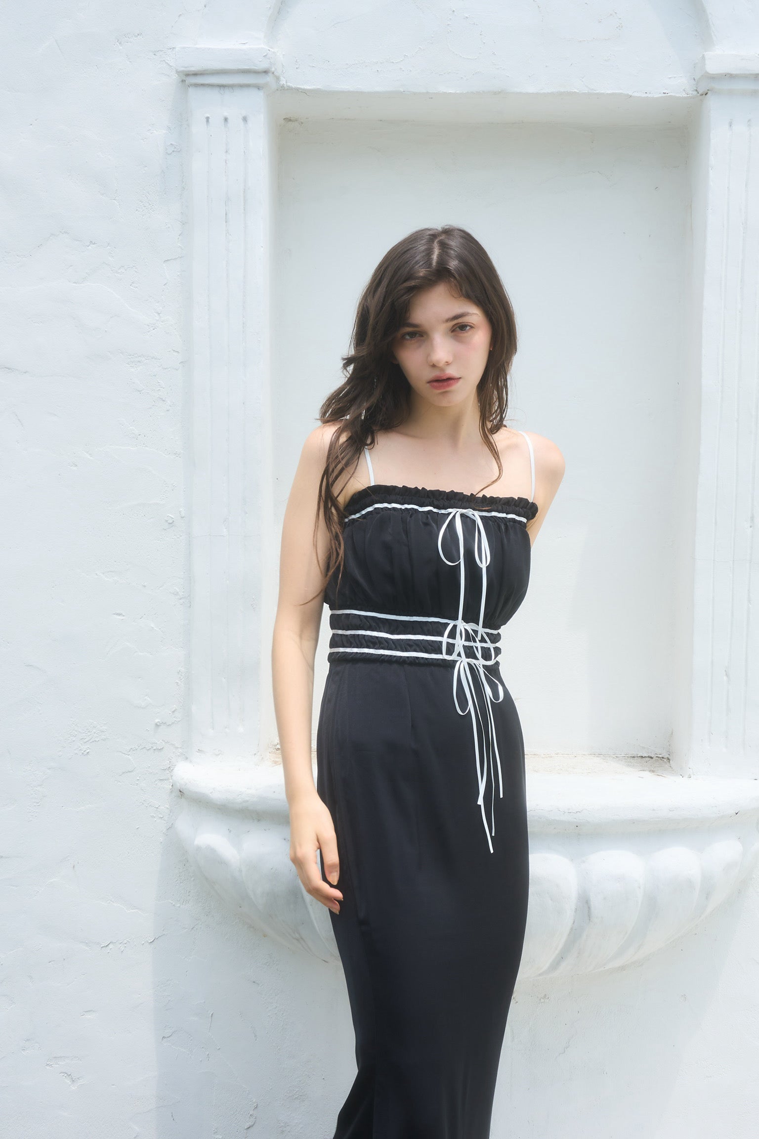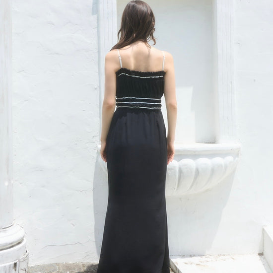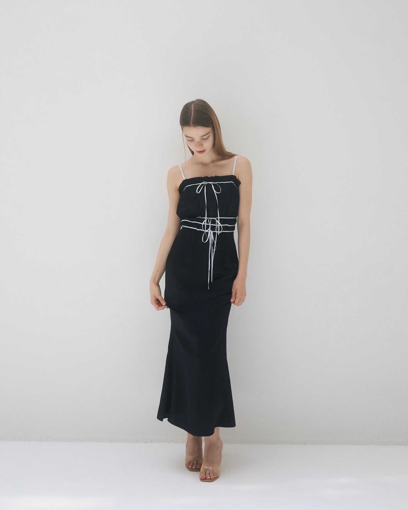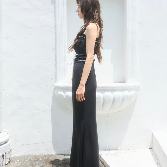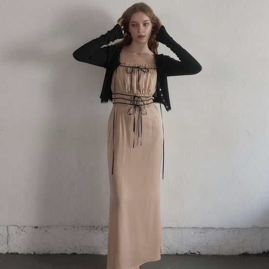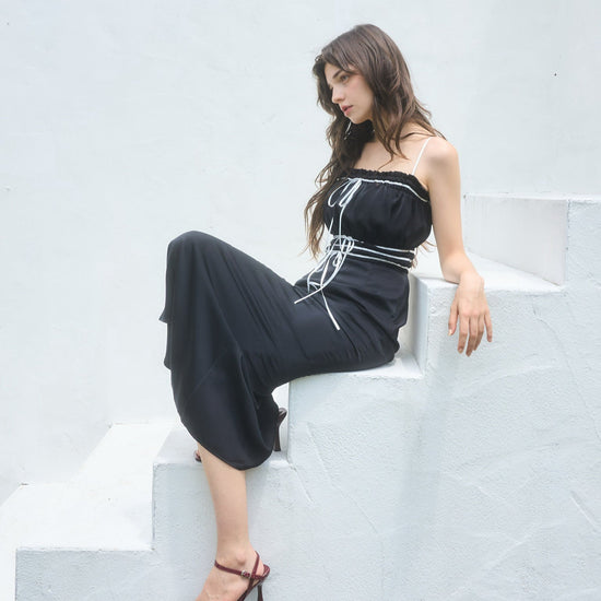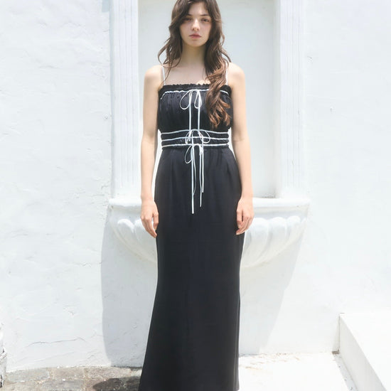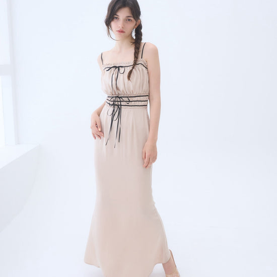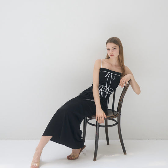 コントラストが目を引くバイカラーワンピース。