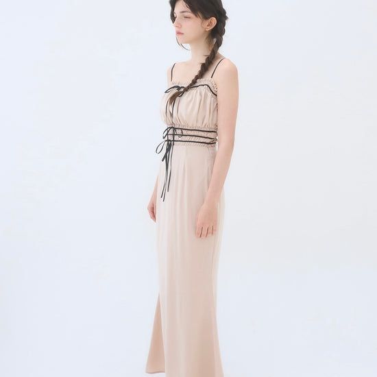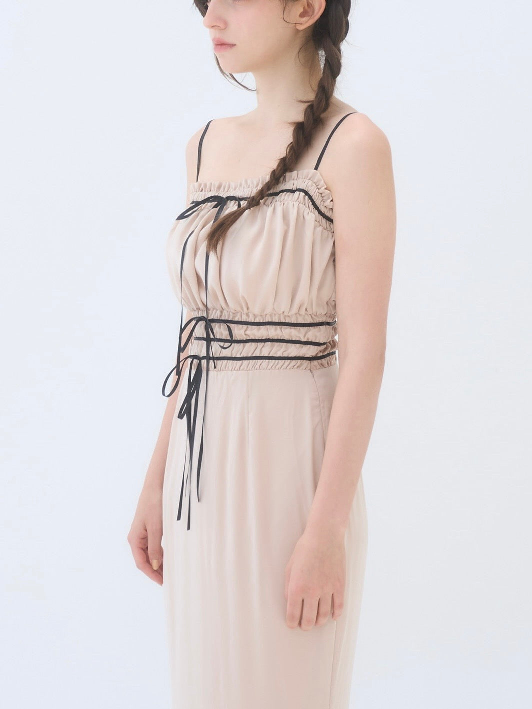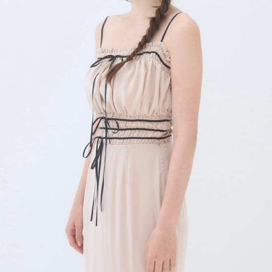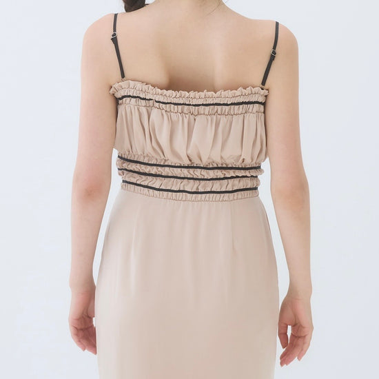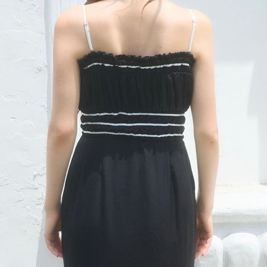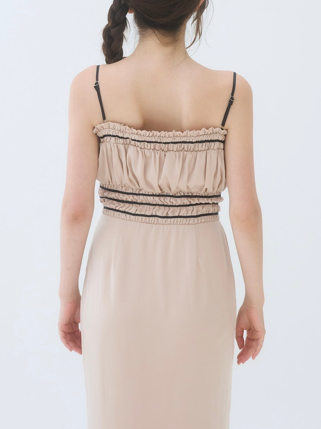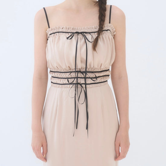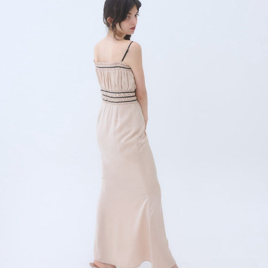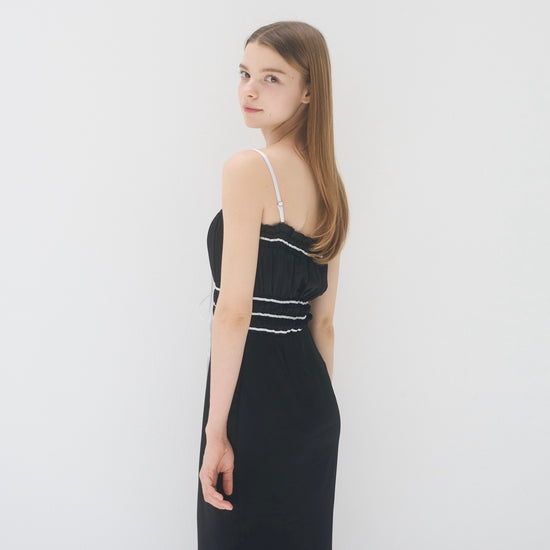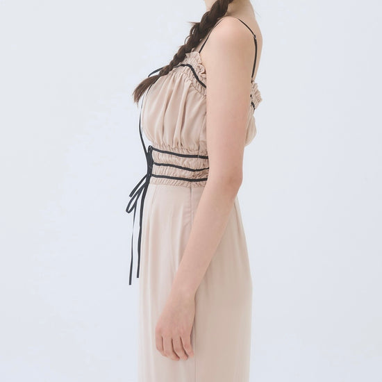 胸周りはシャーリング仕様で、着心地も良く快適に過ごしやすいワンピースです。
