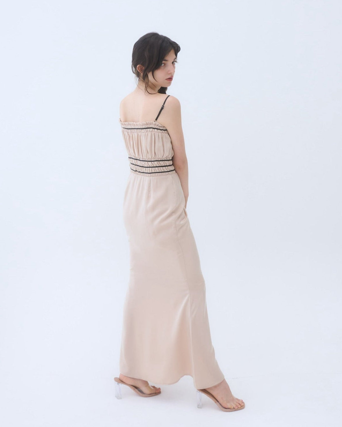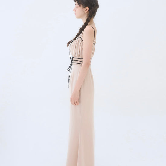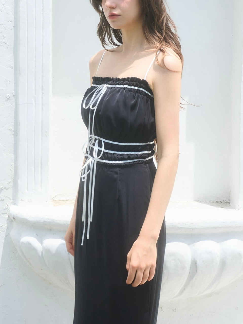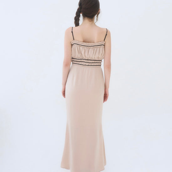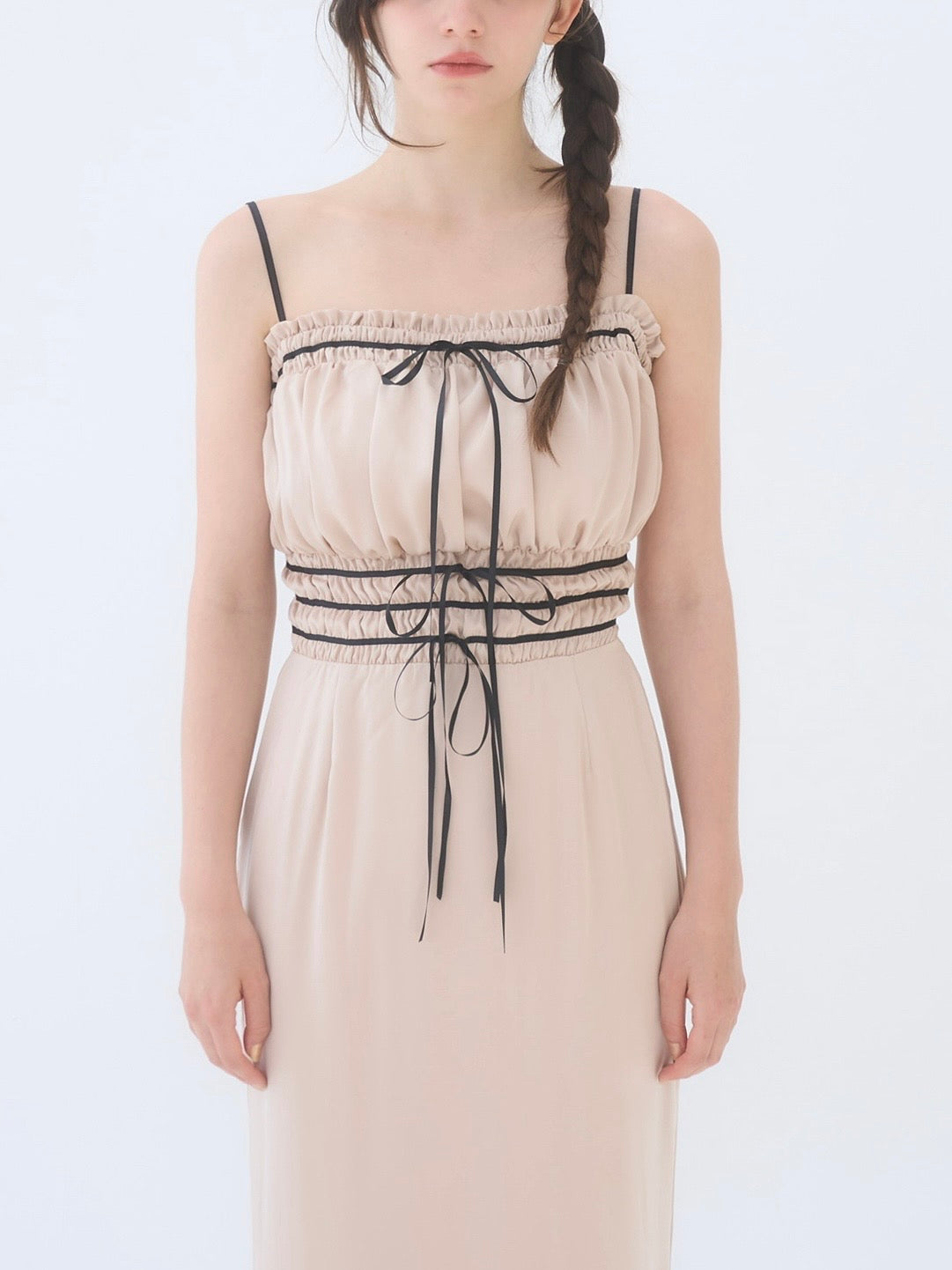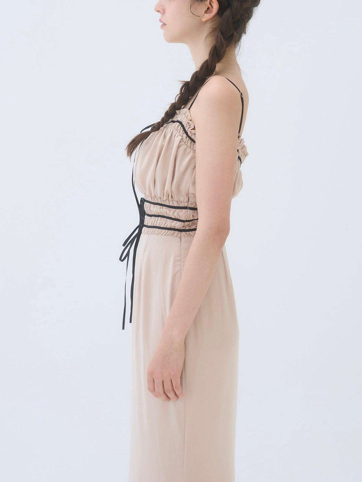 胸周りはシャーリング仕様で、着心地も良く快適に過ごしやすいワンピースです。
