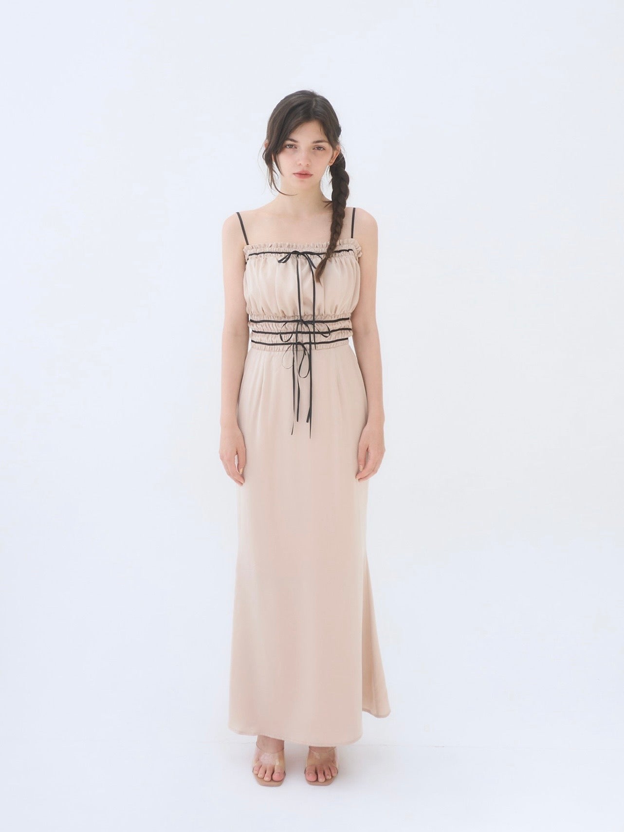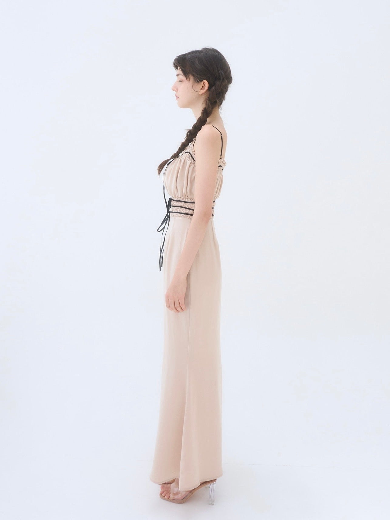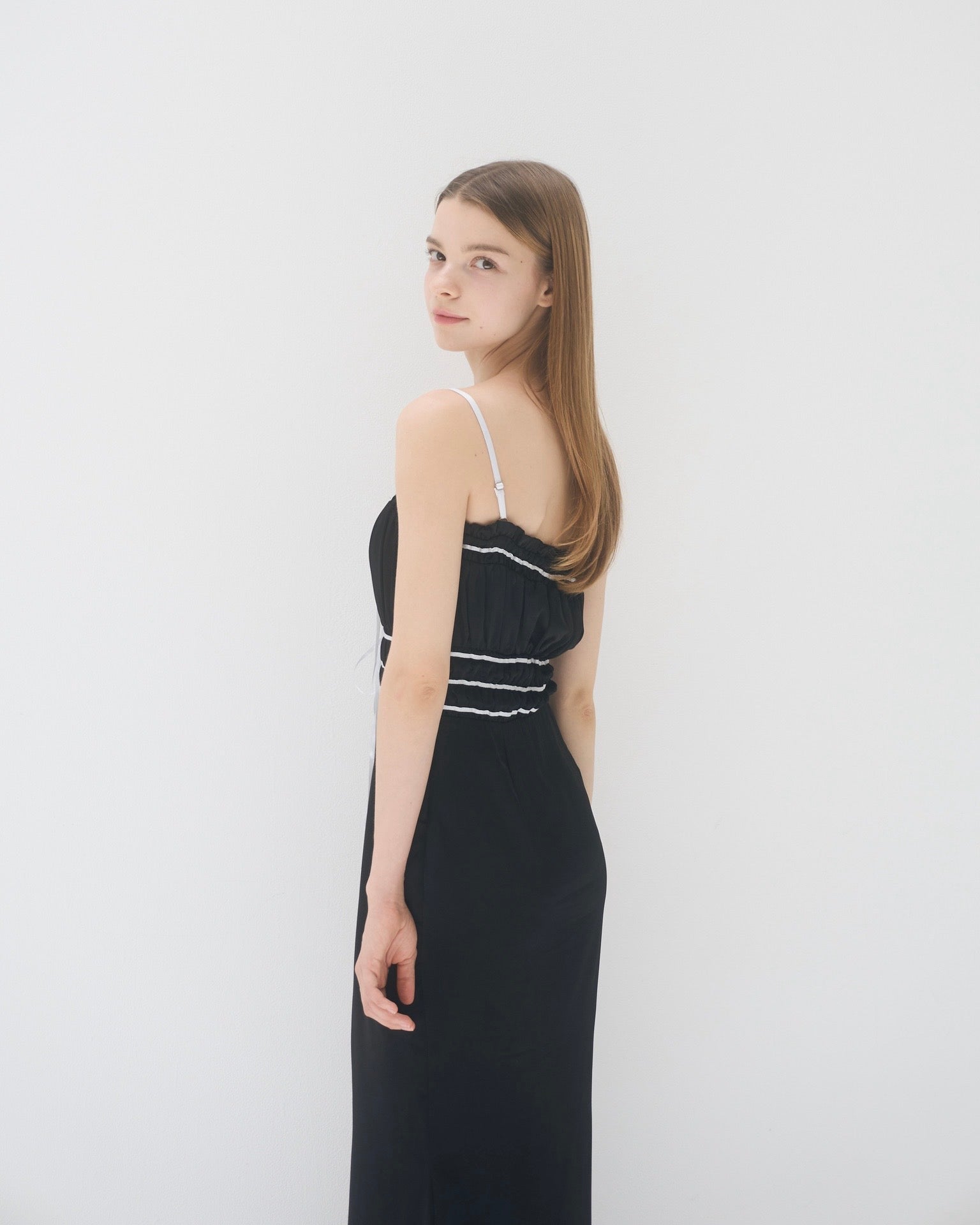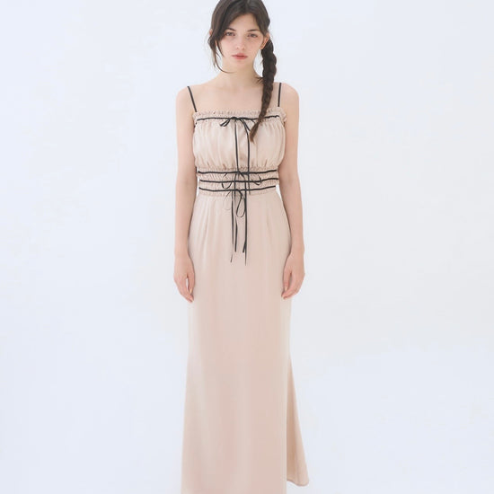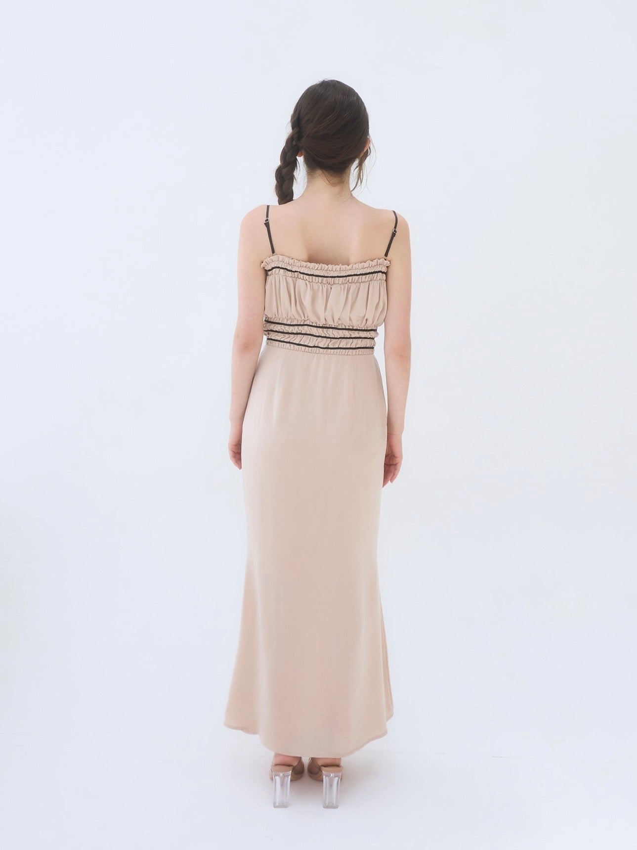 胸周りはシャーリング仕様で、着心地も良く快適に過ごしやすいワンピースです。