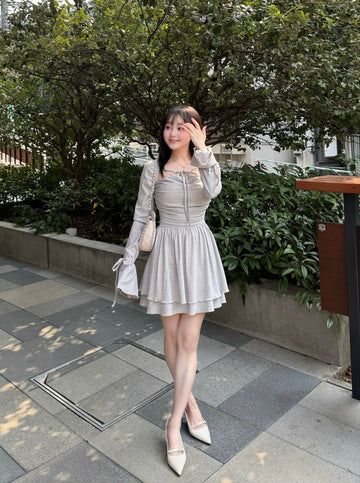 裾のフレアは広がり過ぎず抑えめなシルエットなので綺麗目な印象に。