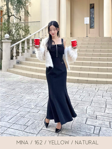 美しいマーメイドシルエットにトレンド感もプラスした特別なワンピース。