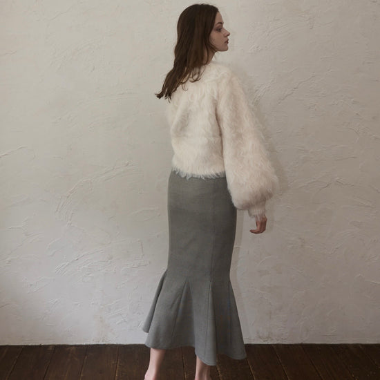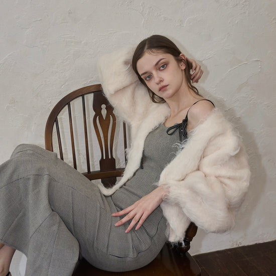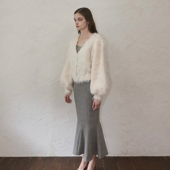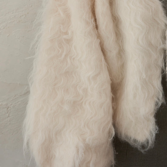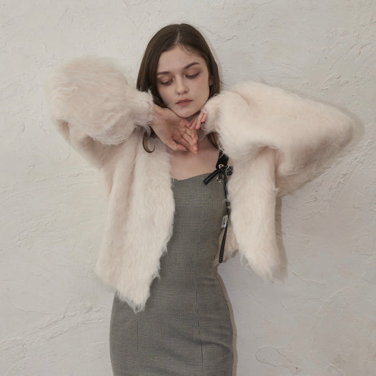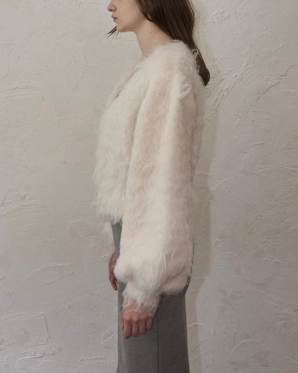 毛長でボリューム感ありますが、肩の位置を落としたシルエットに仕上げているので、肩のボリューム感も抑えて緩っとした抜け感あるシルエットにしています。