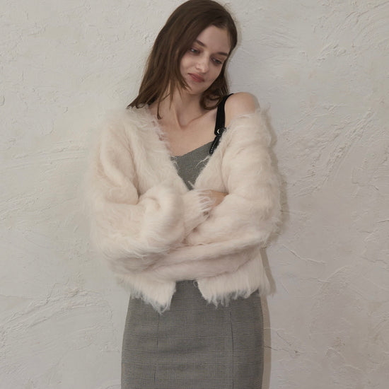 冬から春先までご着用いただけるシャギーカーディガンが登場。