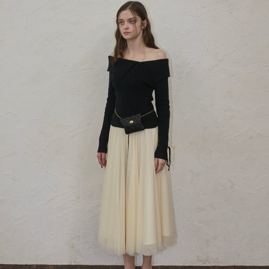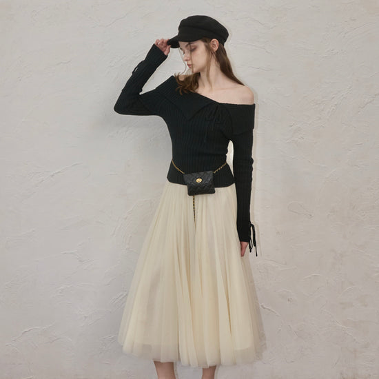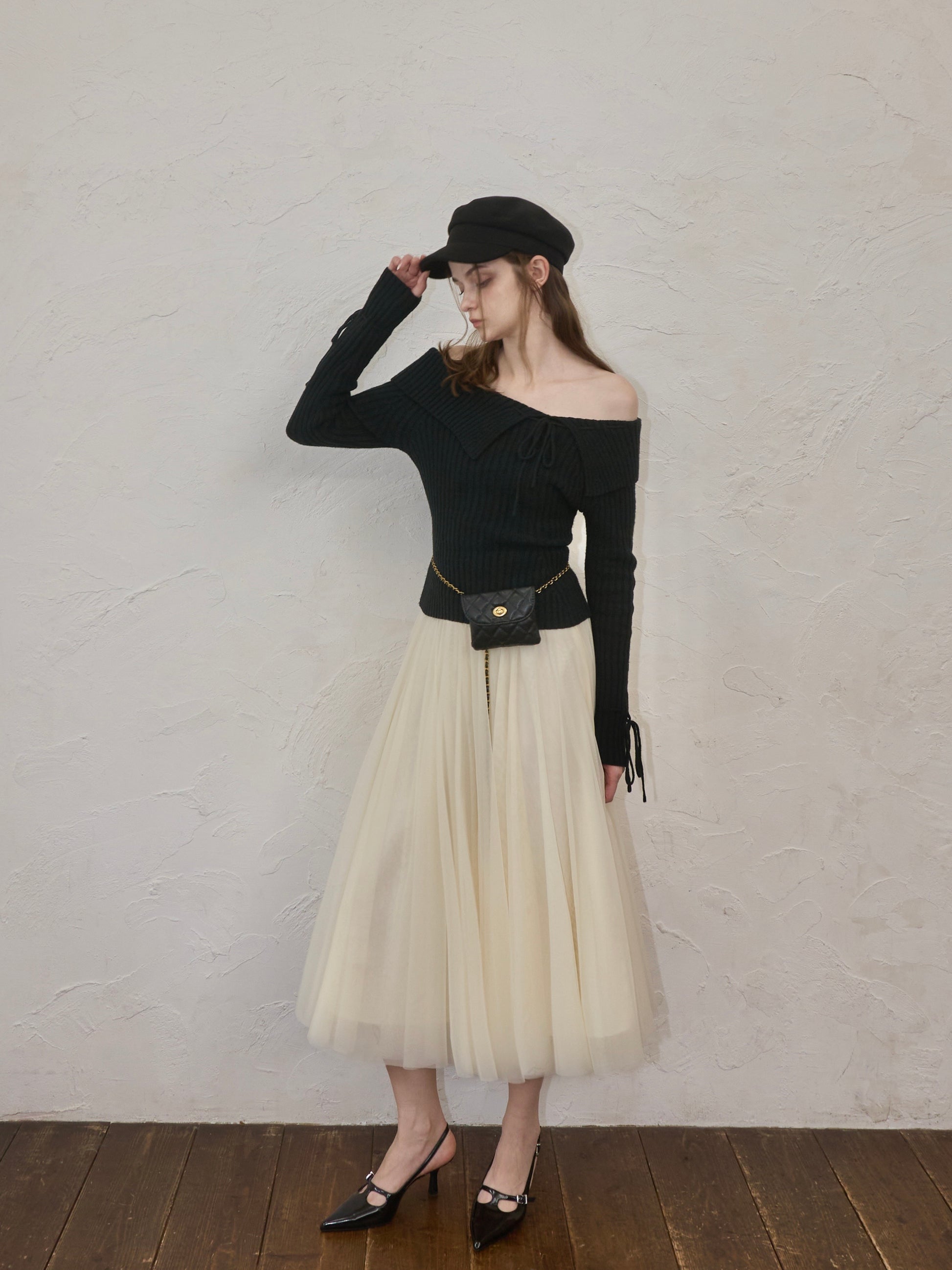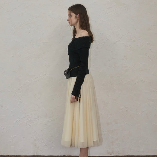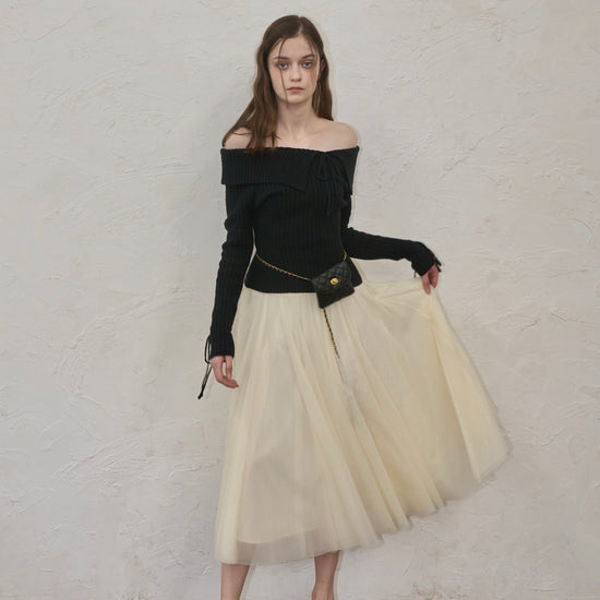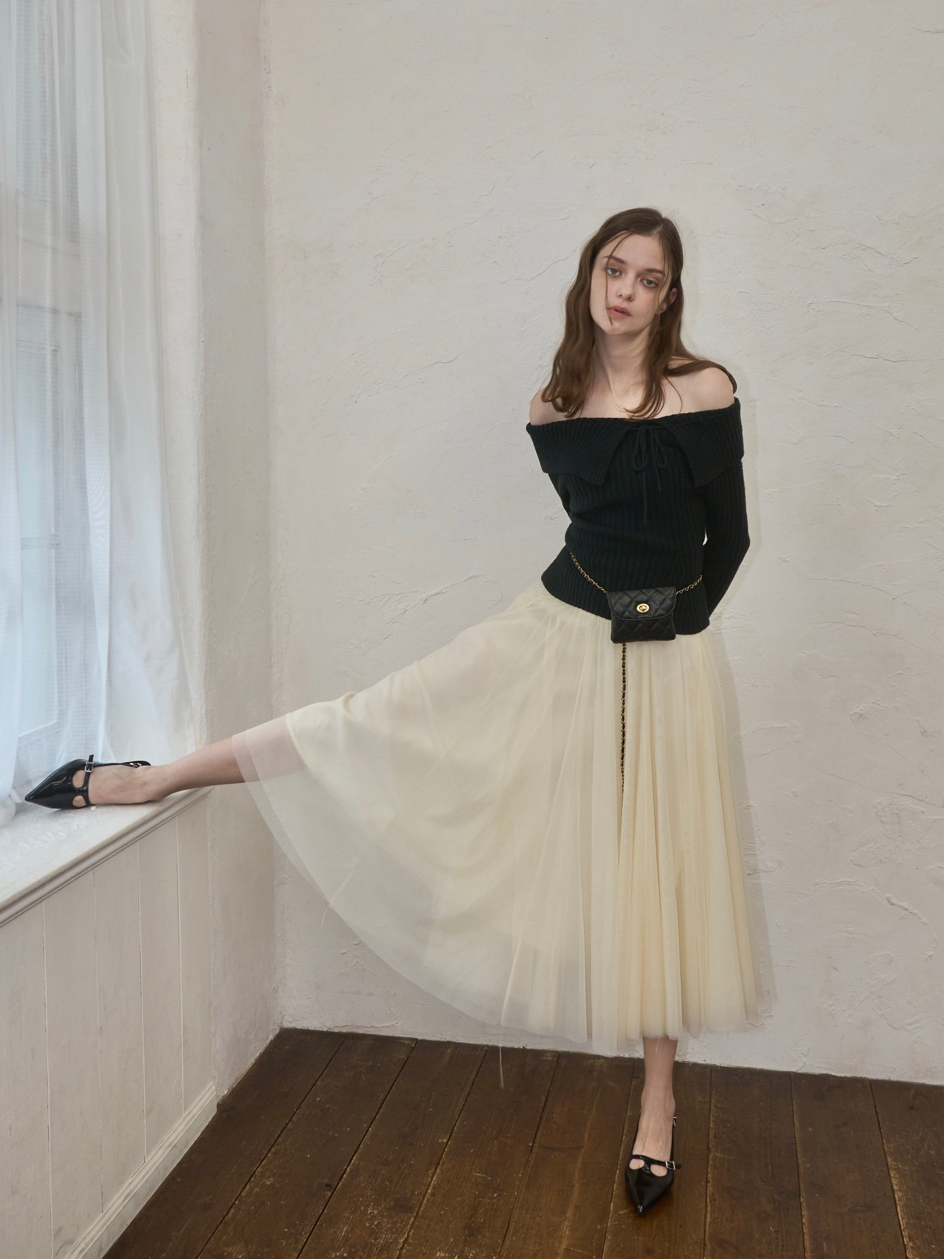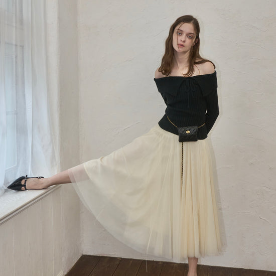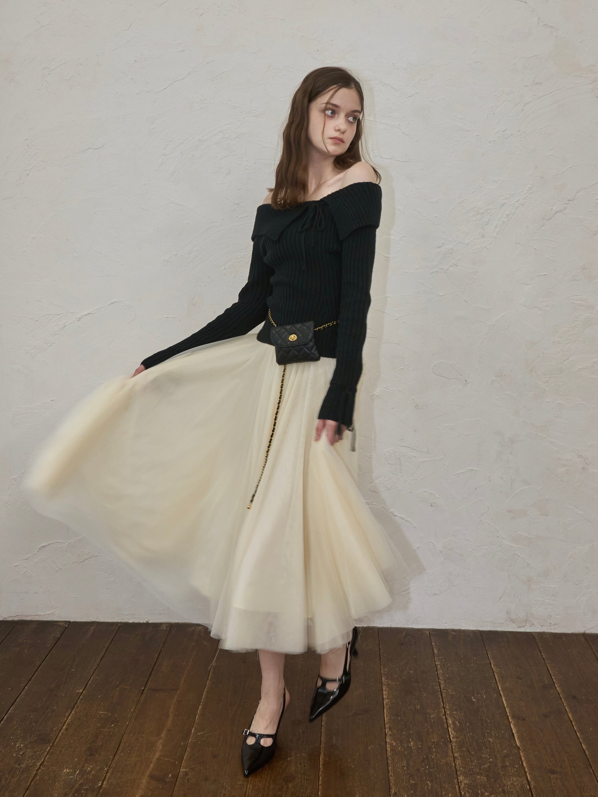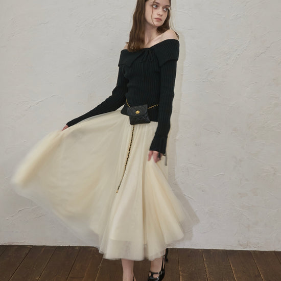 柔らかいチュール素材で絶妙なボリューム感としなやかな動きを演出してくれます。