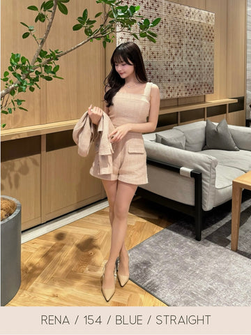 ラメとホロがあしらわれたキラキラで春らしいツイード生地のセットアップのロンパース。