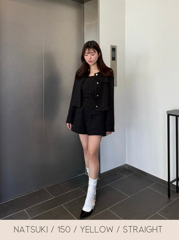 クロップ丈のベーシックなツイードジャケットは様々なボトムスやワンピースに合わせやすいく春アウターとして持っていたい一枚です。