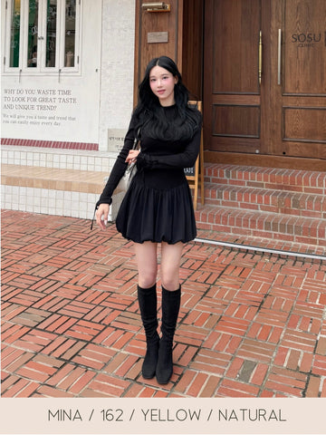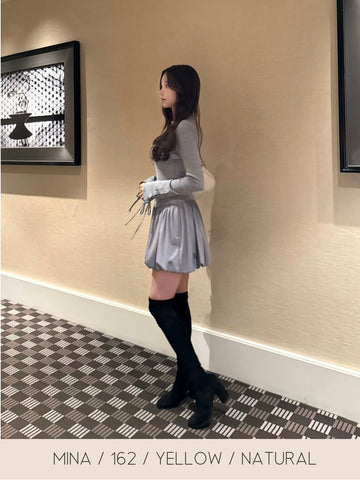 スカートのバルーンはソフトなボリューム感で大人綺麗目な上品シルエット。