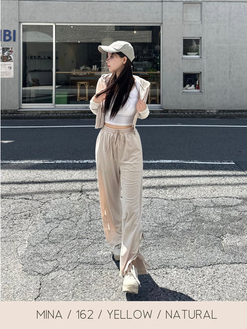 パンツはバレエコアを意識して裾にリボン使い、トレンド感をプラスしました。